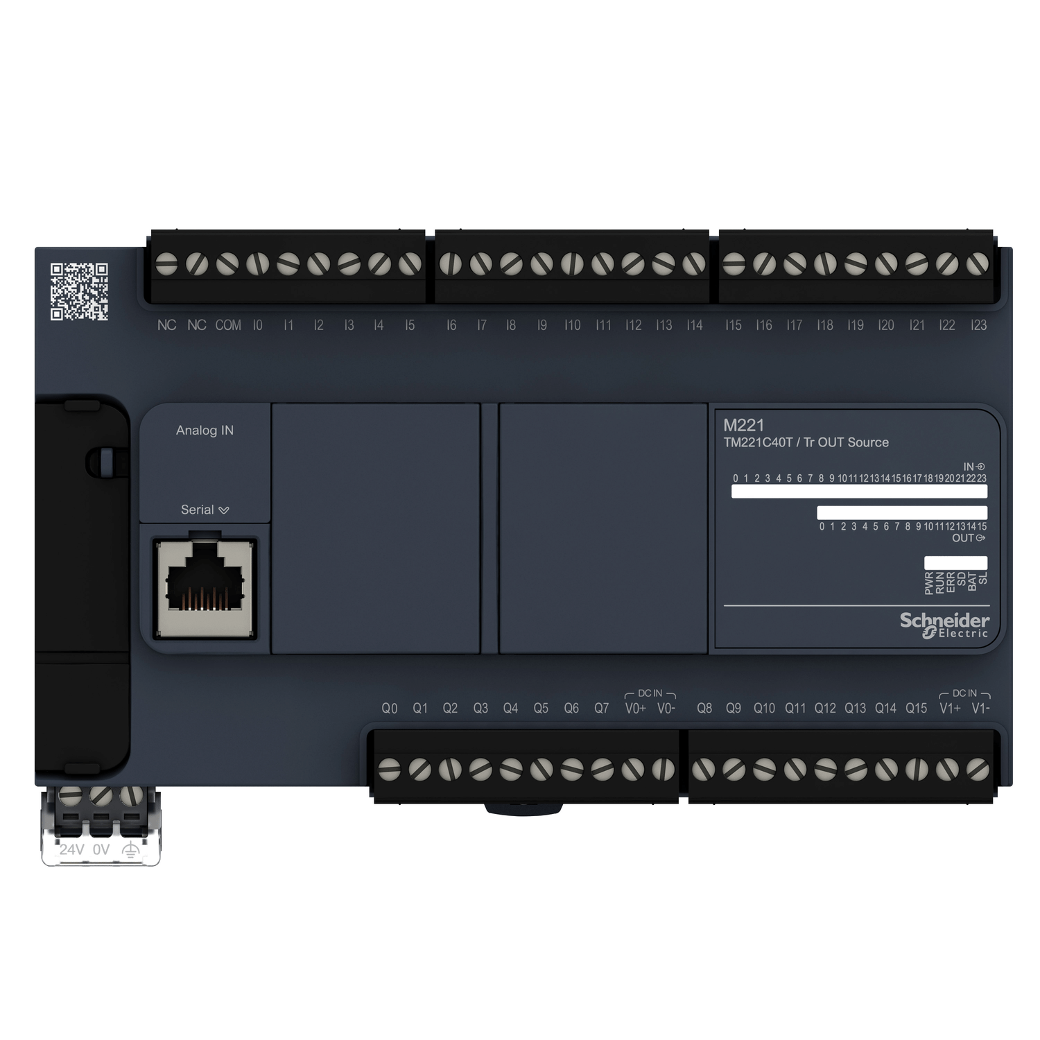Este produto faz parte da faixa Modicon M221, uma oferta de controladores lógicos programáveis para arquiteturas com fio.Este controlador lógico fornece 24 entradas rápidas e discretas, 16 transistor, 2 saídas rápidas com saída de transistor PNP com resolução de 10 bits.Este produto requer instalação mínima e oferece uma enorme versatilidade.As conexões integradas são a porta USB com o conector Mini B USB 2.0, o link serial não isolado 1 com o conector RJ45 e a interface RS485 e a serial serial não isolada serial 2 com o conector RJ45 e a interface RS232/RS485.É um controlador Modicon M221 com 256kb para aplicativos de usuário e RAM de dados, variáveis internas RAM, memória flash embutida de 256kb e uma capacidade de memória de cartão SD de 2 GB.É um produto com classificação IP20.Suas dimensões são de 160 mm (largura) x 70 mm (profundidade) x 90 mm (altura).Ele pesa 0,456 kg.