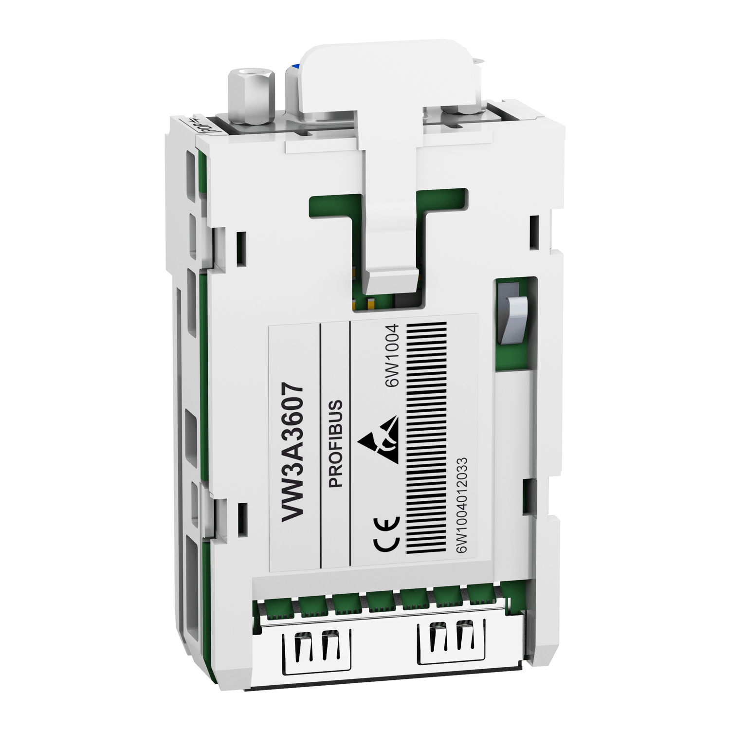 Através do uso de placas de comunicação, o Altivar 32 VFD (inversores de frequência) pode ser conectado a outros barramentos e redes de comunicação industriais. As placas de comunicação estão disponíveis em formato "cassete" e são fáceis de usar e instalar. Elas facilitam a troca de dados. Este produto foi projetado especificamente para processos industriais nos segmentos de mercado: petróleo e gás, mineração, minerais e metais, água para alimentos e bebidas e águas residuais. Ele foi projetado para suportar os ambientes mais severos, operando até 60°C.