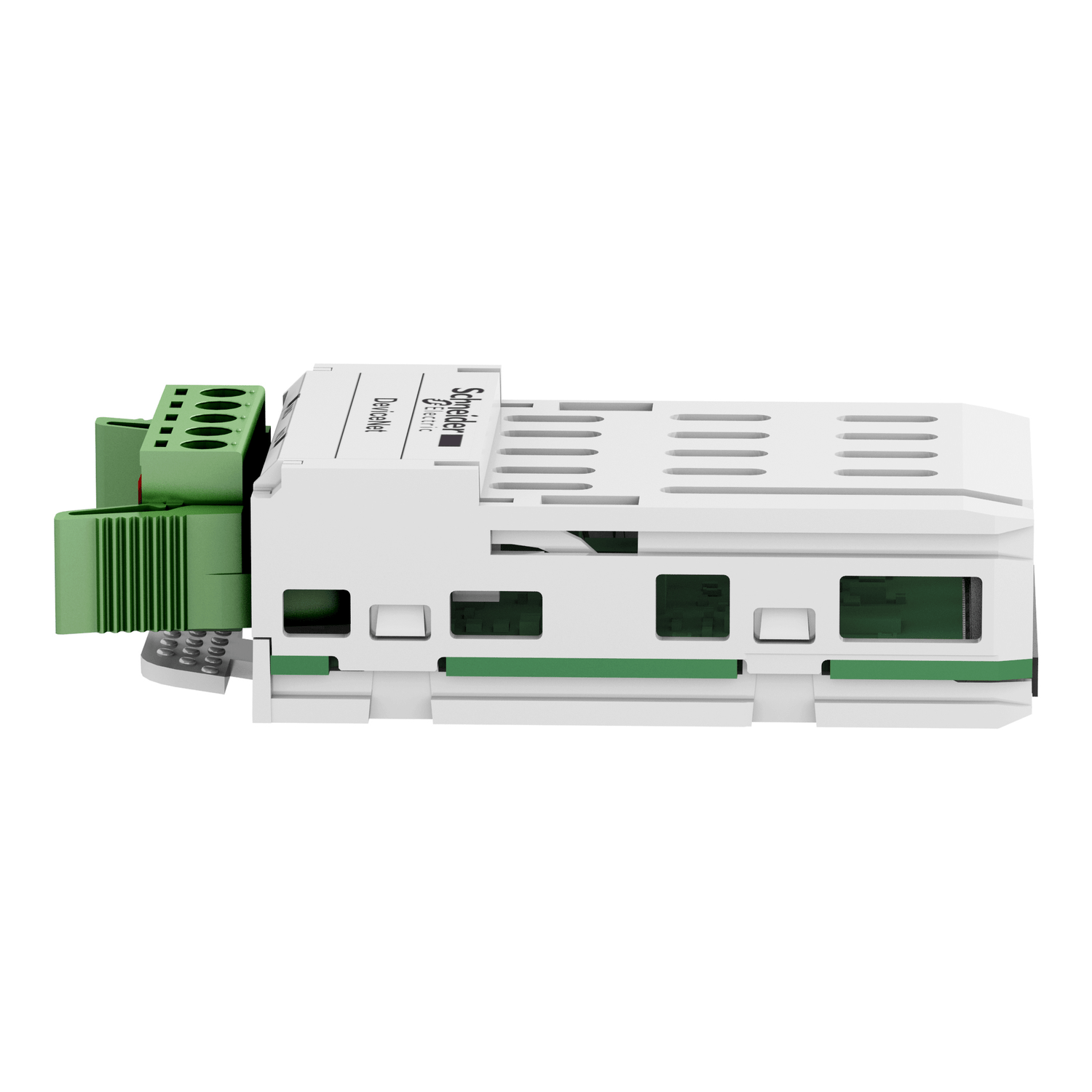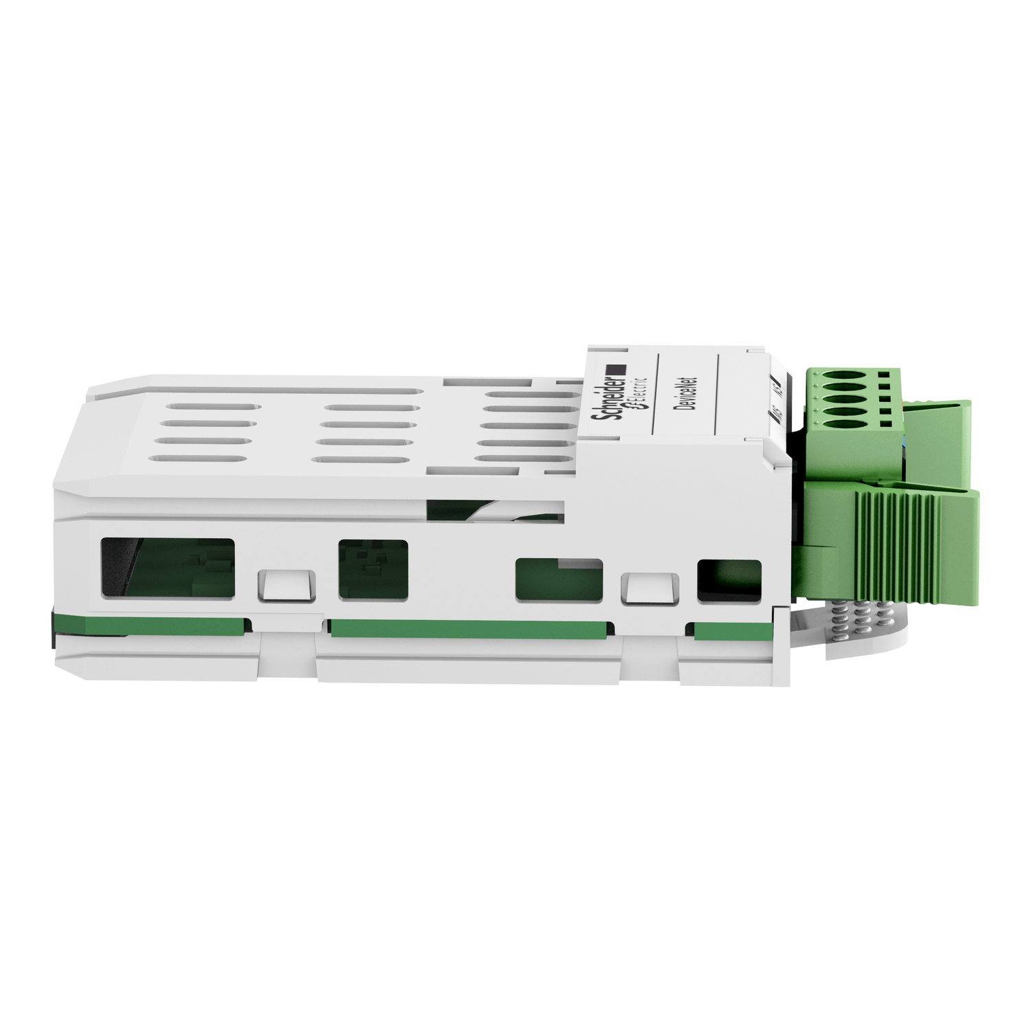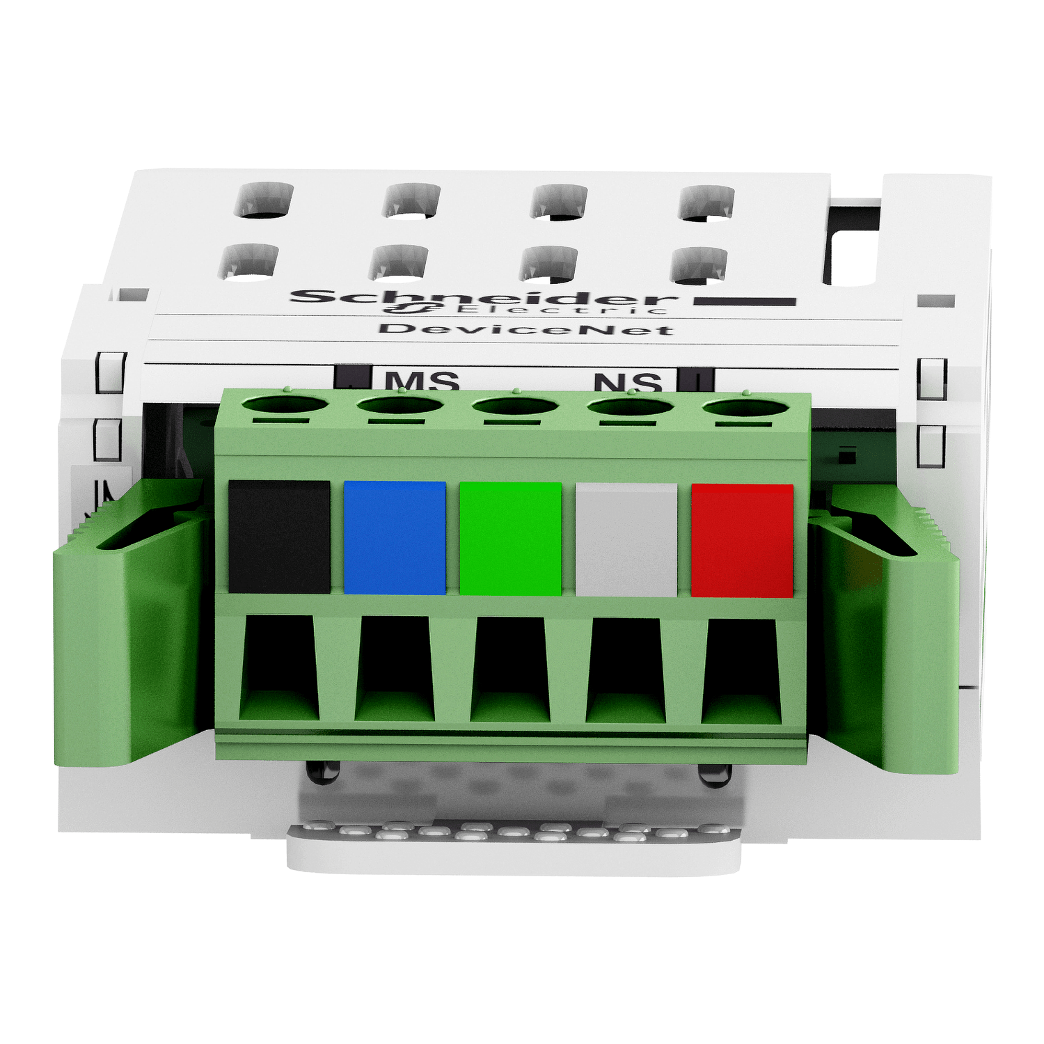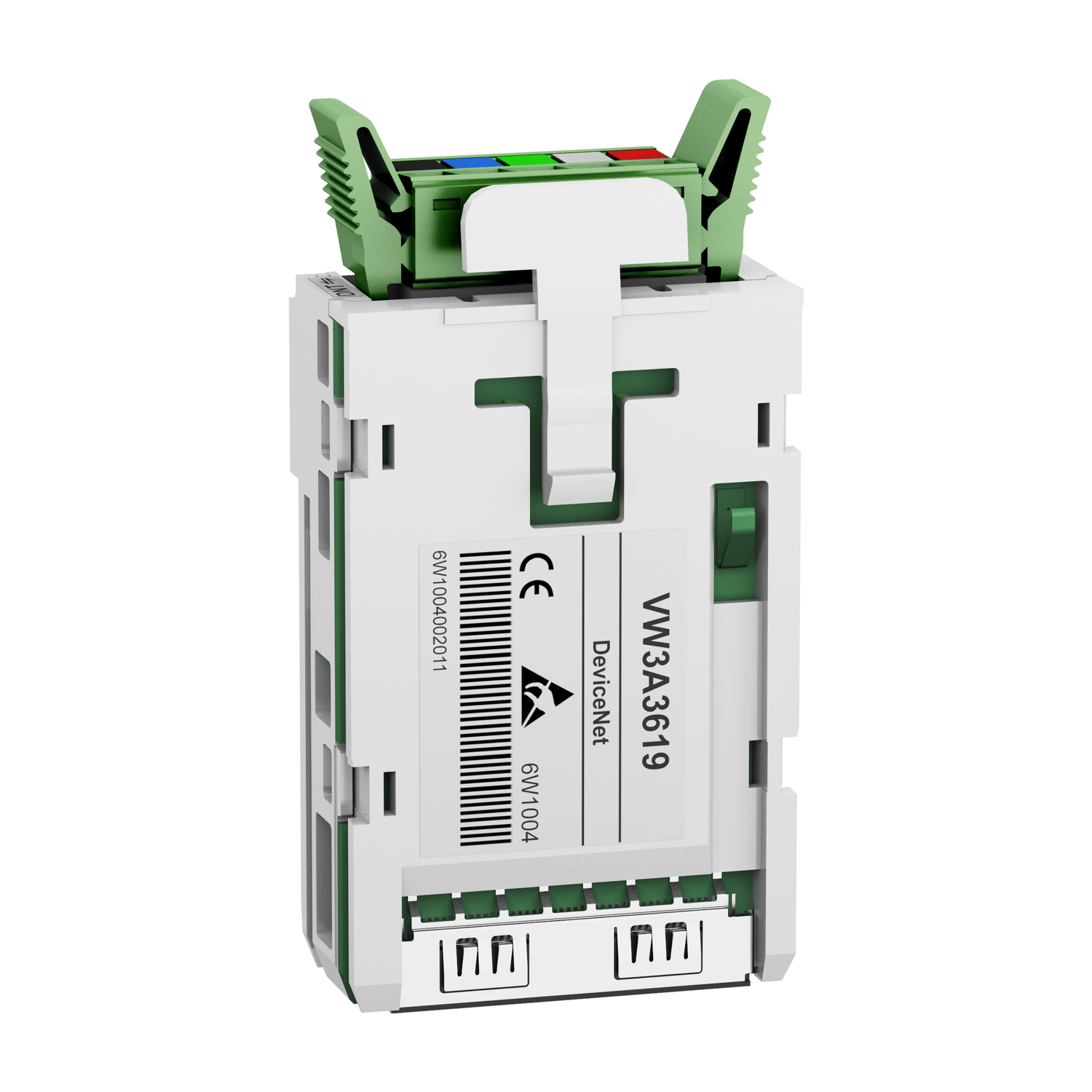 O VW3A3609 é um módulo de comunicação DeviceNet para inversores de frequência da linha Altivar Machine 320/340 e Altivar Process 600/900/APM.Está equipado com um conector parafuso removível de 5 vias.Ele permite a integração do seu inversor de velocidade variável na rede DeviceNet.Ele pesa 0,3kg.