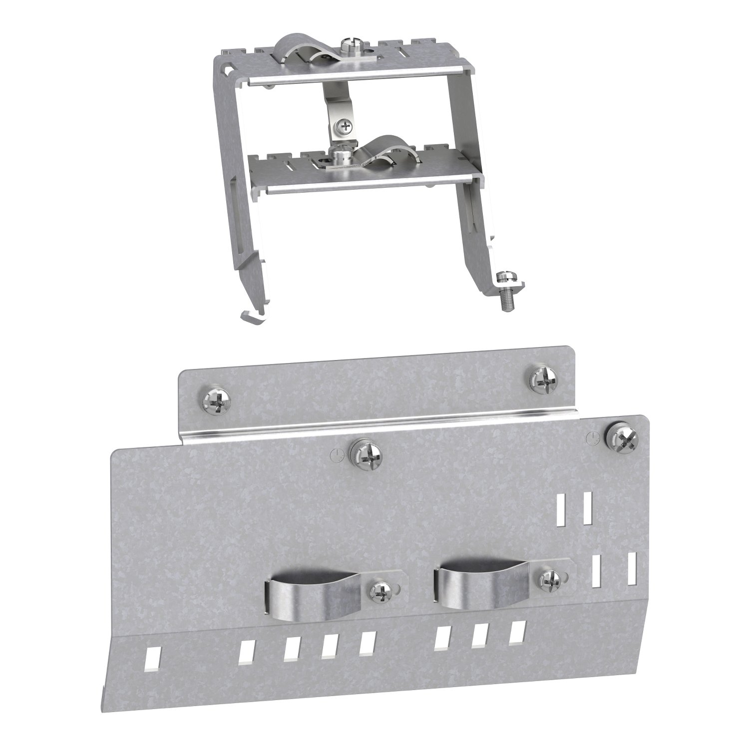 O VW3A4432 é um kit de conformidade EMC para inversores de frequência da linha Altivar Machine 320/340.. Este acessório de fixação permite a montagem de um filtro EMC em um inversor.. É dedicado a unidades de tamanho 3.. Ele pesa 0. 423kg.. O kit é composto por uma placa EMC inferior e superior. 11 parafusos e 6 braçadeiras.