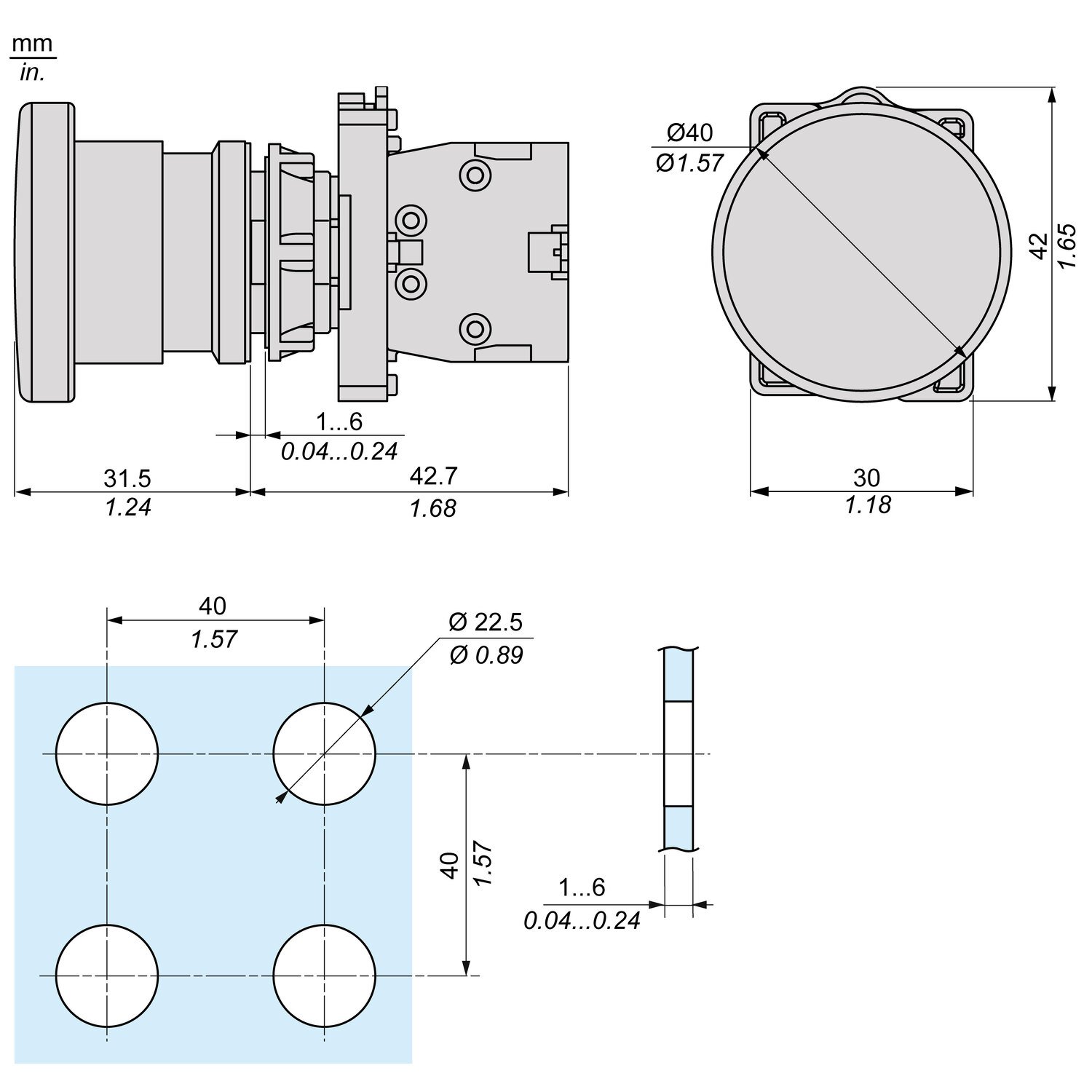 O XA2ES542 é um botão de parada de emergência que faz parte da linha Easy Harmony XA2, uma oferta de botões, interruptores e sinalizadores plásticos de Ø 22mm. Este botão de desligamento de emergência vem com uma cabeça de cogumelo vermelho de Ø 40mm e 1 contato NF. Ele vem com um mecanismo de girar para destravar. Fornece uma interface ergonômica para controlar máquinas. Possui 1 contato NF com operação de interrupção lenta. Este é um botão de plástico. É um produto com classificação IP65 e vem com certificação CE, CCC e EAC em conformidade com os padrões GB 14048.1, IEC 60947-1, GB 14048.5 e IEC 60947-5-1. Ele é facilmente instalado em furo de painel padrão de 22 mm de diâmetro e conectado a circuitos de controle com conexões de braçadeira de parafuso. É claramente distinguível visualmente à distância devido à sua cor clara. É resistente a impactos, à poeira, à água e à vibração, tornando-o adequado para operação em ambientes agressivos. Ele é facilmente instalado em um painel padrão com 22 mm de diâmetro recortado e conectado a circuitos de controle com conexões de parafuso. É claramente distinguível visualmente a uma distância devido à sua cor clara. É resistente a impactos, resistente a poeira, resistente à água e à vibração, tornando-o adequado para operação em ambientes agressivos.