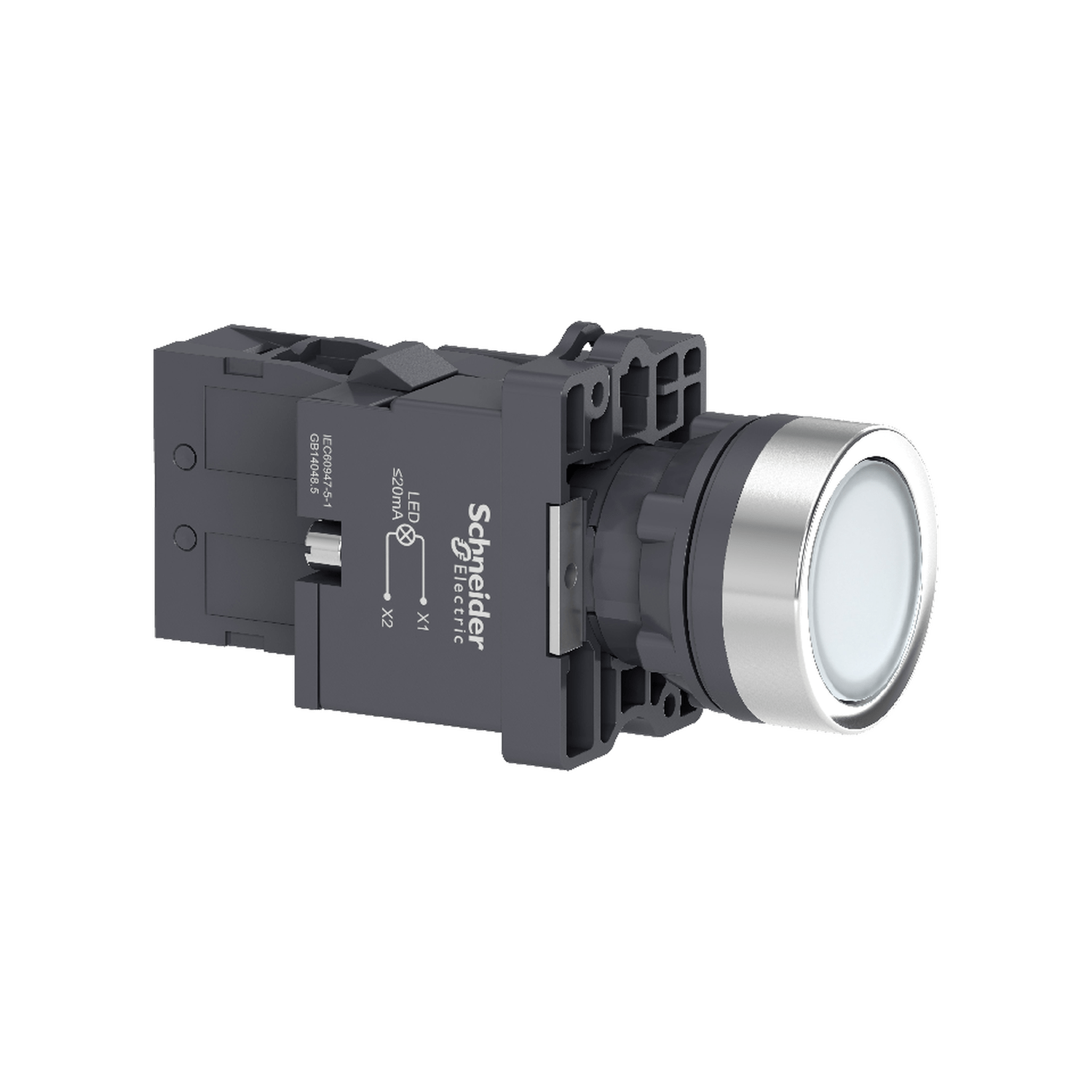 O XA2EW31M1 é um botão luminoso que faz parte da linha Easy Harmony XA2, uma oferta de botões, interruptores e sinalizadores plásticos de Ø 22mm.É um botão modular branco embutido e iluminado.Este botão funciona com um mecanismo de retorno/impulso por mola.Ele é iluminado com LED integrado fornecendo uma interface ergonômica e visual para controlar máquinas.Possui 1 contato NA com operação de interrupção lenta.Este botão tem uma classificação de 220VCA.Este é um botão de plástico com uma moldura com design de anel de aparência metálica.É um produto com classificação IP65 e vem com certificação CE, CCC e EAC em conformidade com os padrões GB 14048.1, IEC 60947-1, GB 14048.5 e IEC 60947-5-1.Ele é facilmente instalado em furo padrão de 22 mm de diâmetro e conectado a circuitos de controle com conexões de braçadeira de parafuso.É claramente distinguível visualmente à distância devido à sua cabeça iluminada e cor clara.É resistente a impactos, à poeira, à água e à vibração, tornando-o adequado para operação em ambientes agressivos.
