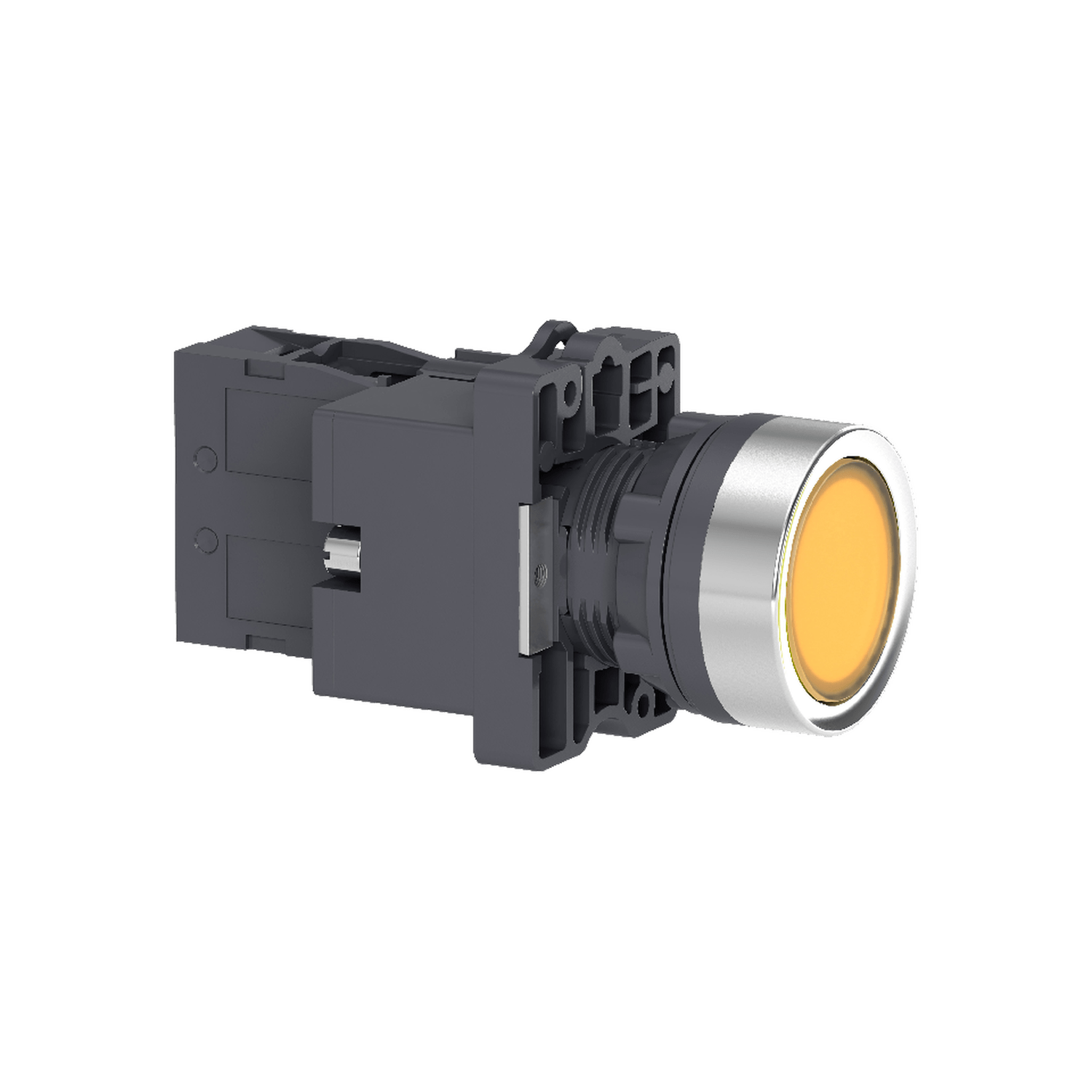 O XA2EW35B1 é um botão luminoso que faz parte da linha Easy Harmony XA2, uma oferta de botões, interruptores e sinalizadores plásticos de Ø 22mm.É um botão modular âmbar embutido e iluminado.Este botão funciona com um mecanismo de retorno/impulso por mola.Ele é iluminado com LED integrado fornecendo uma interface ergonômica e visual para controlar máquinas.Possui 1 contato NA com operação de interrupção lenta.Este botão tem uma classificação de 24 V CA/CC.Este é um botão de plástico com uma moldura com design de anel de aparência metálica.É um produto com classificação IP65 e vem com certificação CE, CCC e EAC em conformidade com os padrões GB 14048.1, IEC 60947-1, GB 14048.5 e IEC 60947-5-1.Ele é facilmente instalado em furo padrão de 22 mm de diâmetro e conectado a circuitos de controle com conexões de braçadeira de parafuso.É claramente distinguível visualmente à distância devido à sua cabeça iluminada e cor clara.É resistente a impactos, à poeira, à água e à vibração, tornando-o adequado para operação em ambientes agressivos.