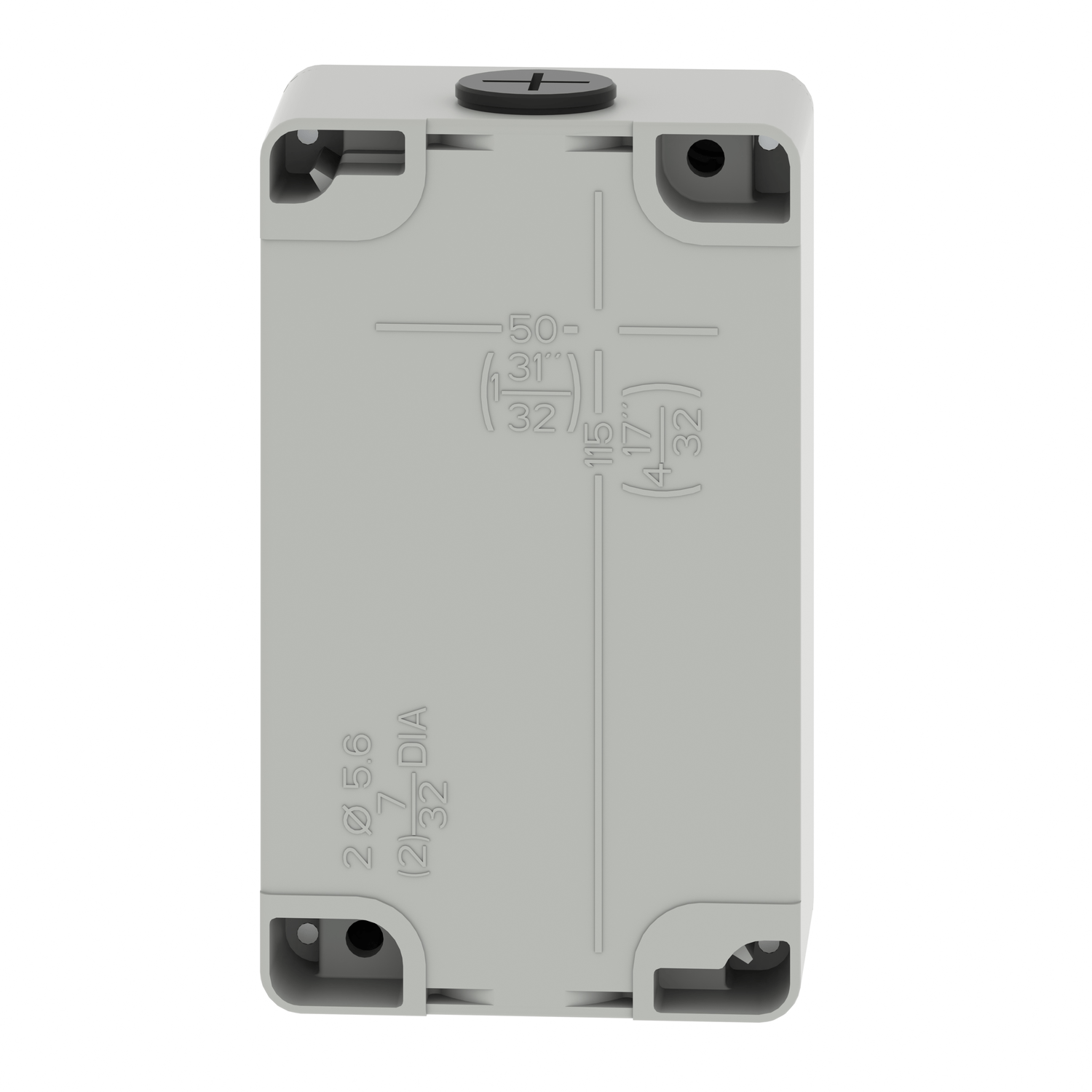 A XAPD2202 é uma botoeira de comando metálica da linha Harmony XAP.Uma oferta de botoeiras de comando metálicos para as séries XB4 e XB5 de botões Ø 22mm.XAPD2202 é uma botoeira vazia de cor cinza (RAL7035).Esta versão com 2 furos permite qualquer tipo de função XB4/XB5, incluindo paradas de emergência com placa de legenda.2 tamanhos de porta-legendas podem ser usados em posições diferentes.O tamanho permanece compacto.É possível personalizar o XAP com o seletor e configurador de produtos online Harmony.Este produto foi padronizado com rosca métrica para ser utilizado com prensa-cabos ISO para estar em total conformidade com a norma IEC 62444.Possui dois furos M20.A proteção contra choque elétrico é de classe I em conformidade com EN/IEC 61140 e o nível de proteção contra choque mecânico é de até IK07 em conformidade com EN/IEC 62262.Esta é uma oferta de liga de zinco e as dimensões são 80 mm (largura) x 130 mm (altura) x 51,5 mm (profundidade) e pesa 0,610 kg.O XAPD foi projetado para fabricantes de equipamentos originais (OEMs) que atendem a requisitos de aplicações pesadas, como manuseio de materiais, alimentos e bebidas, turbinas eólicas, mineração, minerais e metais (MMM), veículos, etc.Esta botoeira está em conformidade com EN/IEC 60529 e EN/IEC 60947-5-1 e vem com certificação CE, UL, cULus e EAC.Painel de legenda totalmente personalizado está disponível para melhorar a experiência da interface e a estética da botoeira.A XAP foi projetada para ser montada na posição vertical e horizontal com 4 furos de fixação.O formato permite uma combinação entre simplicidade, flexibilidade de personalização e design atraente para máquinas.