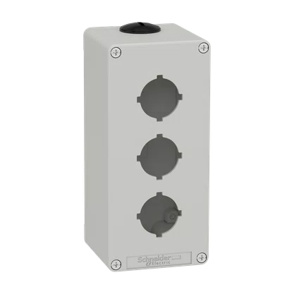 A XAPD3603 é uma botoeira de comando metálica da linha Harmony XAP.Uma oferta de botoeiras de comando metálicos para botões de Ø 22mm das séries XB4 e XB5 e para botões de Ø 30mm das séries 9001K e 9001SK.XAPD3603 é uma botoeira vazia de cor cinza (RAL7035).Esta versão com 3 furos permite qualquer tipo de função XB4/XB5, incluindo paradas de emergência com placa de legenda.2 tamanhos de porta-legendas podem ser usados em posições diferentes.A sua dimensão deixa um espaço confortável para a cablagem.É possível personalizar o XAP com o seletor e configurador de produtos online Harmony.Este produto foi padronizado com rosca métrica para ser utilizado com prensa-cabos ISO para estar em total conformidade com a norma IEC 62444.Possui dois furos M25.A proteção contra choque elétrico é de classe I em conformidade com EN/IEC 61140 e o nível de proteção contra choque mecânico é de até IK07 em conformidade com EN/IEC 62262.Esta é uma oferta de liga de zinco e as dimensões são 80 mm (largura) x 175 mm (altura) x 77mm (profundidade) e pesa 1.140kg.O XAPD foi projetado para fabricantes de equipamentos originais (OEMs) que atendem a requisitos de aplicações pesadas, como manuseio de materiais, alimentos e bebidas, turbinas eólicas, mineração, minerais e metais (MMM), veículos, etc.Esta botoeira está em conformidade com EN/IEC 60529 e EN/IEC 60947-5-1 e vem com certificação CE e EAC.Painel de legenda totalmente personalizado está disponível para melhorar a experiência da interface e a estética da botoeira.O acessório ZB4FBZ014 também está disponível para montagem de cabeçotes embutidos.A XAP foi projetada para ser montada na posição vertical e horizontal com 4 furos de fixação.O formato permite uma combinação entre simplicidade, flexibilidade de personalização e design atraente para máquinas.É rotulado como Green Premium e está em conformidade com diretivas como RoHS, WEEE e REACh relacionadas à proteção ambiental.