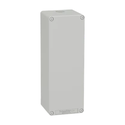 A XAPD44 é uma botoeira de comando metálica da linha Harmony XAP.Uma oferta de botoeiras de comando metálicos para as séries XB4 e XB5 de botões Ø 22mm.XAPD44 é uma botoeira vazia de cor cinza (RAL7035).Esta versão sem furo permite uma posição personalizável dos botões na tampa.Também pode ser usado como caixa de conexão.A sua dimensão deixa um espaço confortável para a cablagem.É possível personalizar o XAP com o seletor e configurador de produtos online Harmony.Este produto foi padronizado com rosca métrica para ser utilizado com prensa-cabos ISO para estar em total conformidade com a norma IEC 62444.Possui dois furos M25.A proteção contra choque elétrico é de classe I em conformidade com EN/IEC 61140 e o nível de proteção contra choque mecânico é de até IK07 em conformidade com EN/IEC 62262.Esta é uma oferta de liga de zinco e as dimensões são 80 mm (largura) x 220 mm (altura) x 77mm (profundidade) e pesa 1.410kg.O XAPD foi projetado para fabricantes de equipamentos originais (OEMs) que atendem a requisitos de aplicações pesadas, como manuseio de materiais, alimentos e bebidas, turbinas eólicas, mineração, minerais e metais (MMM), veículos, etc.Esta botoeira está em conformidade com EN/IEC 60529 e EN/IEC 60947-5-1 e vem com certificação CE e EAC.Painel de legenda totalmente personalizado está disponível para melhorar a experiência da interface e a estética da botoeira.A XAP foi projetada para ser montada na posição vertical e horizontal com 4 furos de fixação.O formato permite uma combinação entre simplicidade, flexibilidade de personalização e design atraente para máquinas.É rotulado como Green Premium e está em conformidade com diretivas como RoHS, WEEE e REACh relacionadas à proteção ambiental.