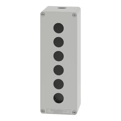 A XAPD4506 é uma botoeira de comando metálica da linha Harmony XAP.Uma oferta de botoeiras de comando metálicos para as séries XB4 e XB5 de botões Ø 22mm.XAPD4506 é uma botoeira vazia de cor cinza (RAL7035).Esta versão com 6 furos permite a combinação de funções XB4/XB5 em um pequeno volume.A sua dimensão deixa um espaço confortável para a cablagem.É possível personalizar o XAP com o seletor e configurador de produtos online Harmony.Este produto foi padronizado com rosca métrica para ser utilizado com prensa-cabos ISO para estar em total conformidade com a norma IEC 62444.Possui dois furos M25.A proteção contra choque elétrico é de classe I em conformidade com EN/IEC 61140 e o nível de proteção contra choque mecânico é de até IK07 em conformidade com EN/IEC 62262.Esta é uma oferta de liga de zinco e as dimensões são 80 mm (largura) x 220 mm (altura) x 77mm (profundidade) e pesa 1.380kg.O XAPD foi projetado para fabricantes de equipamentos originais (OEMs) que atendem a requisitos de aplicações pesadas, como manuseio de materiais, alimentos e bebidas, turbinas eólicas, mineração, minerais e metais (MMM), veículos, etc.Esta botoeira está em conformidade com EN/IEC 60529 e EN/IEC 60947-5-1 e vem com certificação CE e EAC.Painel de legenda totalmente personalizado está disponível para melhorar a experiência da interface e a estética da botoeira.A XAP foi projetada para ser montada na posição vertical e horizontal com 4 furos de fixação.O formato permite uma combinação entre simplicidade, flexibilidade de personalização e design atraente para máquinas.É rotulado como Green Premium e está em conformidade com diretivas como RoHS, WEEE e REACh relacionadas à proteção ambiental.