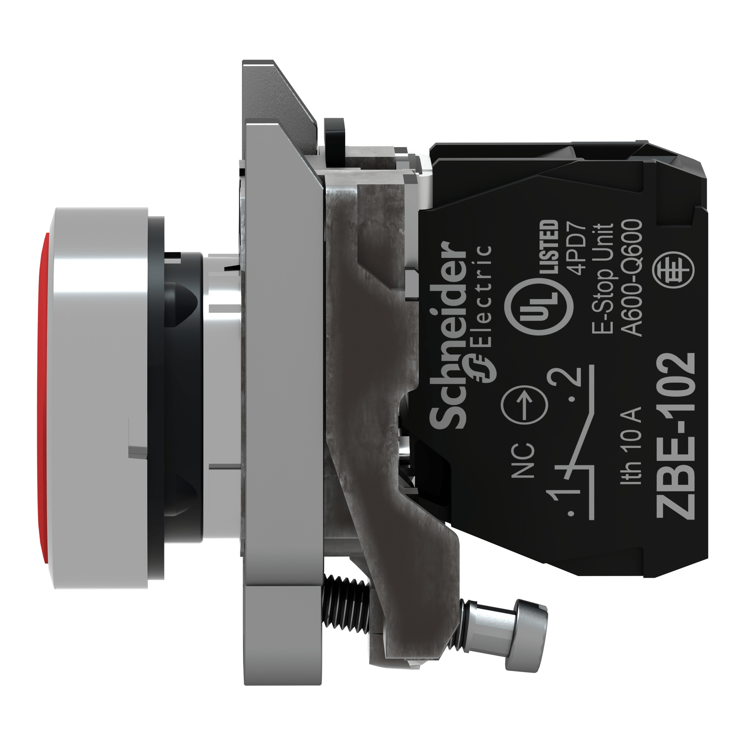 O XB4BA42 é um botão metálico vermelho da linha Harmony XB4, que opera com mecanismo de retorno por mola e possui um contato Normalmente Fechado.,Ele oferece uma interface ergonômica para controlar suas máquinas e pode ser facilmente instalado em painéis com furação padrão de 22mm de diâmetro.,É resistente a impactos, poeira, água e vibração graças ao seu IP66 / IP67 / IP69 / IP69K, tornando-o ideal para operação em ambientes agressivos.,Graças à sua simplicidade de instalação, flexibilidade e robustez, atende aos requisitos da maioria das aplicações industriais, dentre elas podemos citar:,Mineradoras, Petroleiras, Máquinas de usinagem e embalagem, Indústrias automotivas e de Tratamento de água.