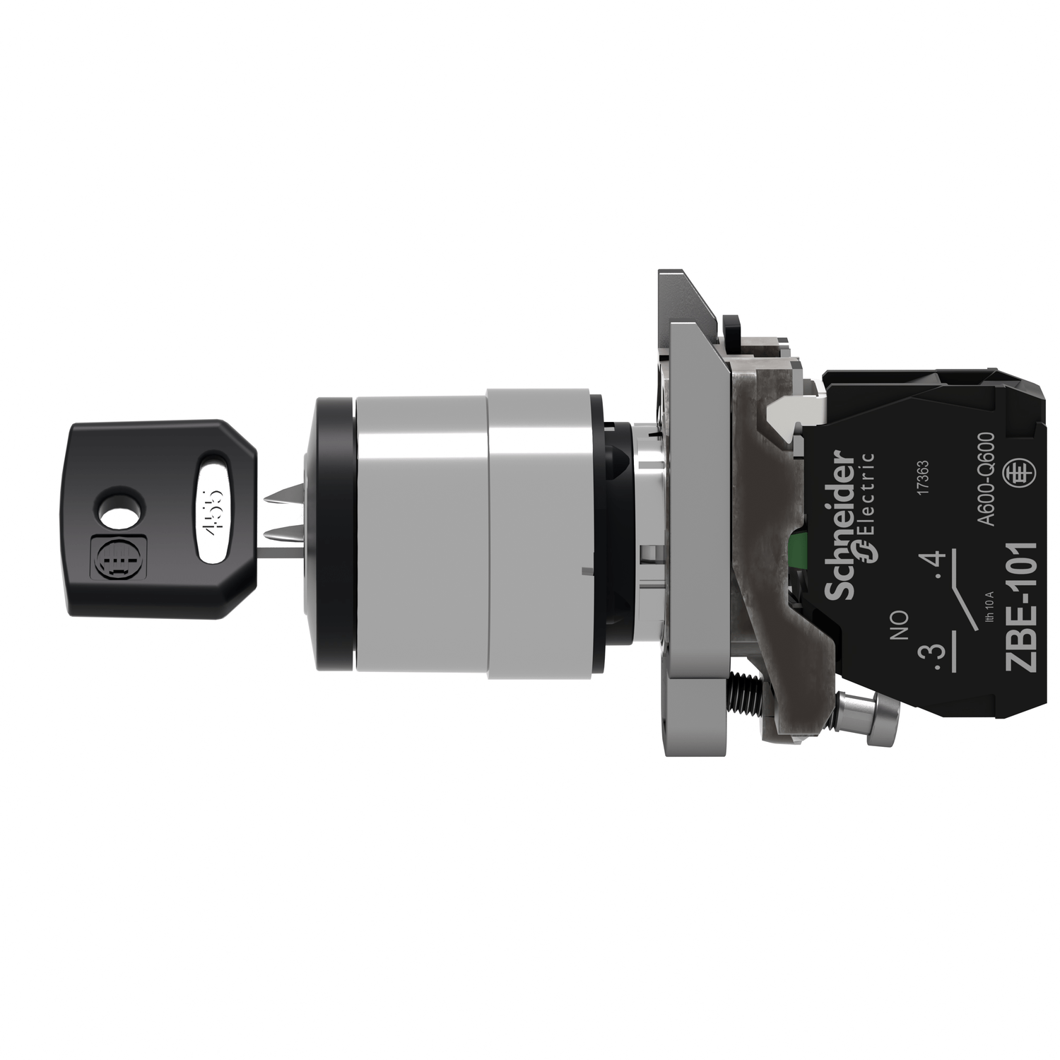 A XB4BG41 é uma chave seletora metálica preta da linha Harmony XB4, possui 2 posições fixas, opera com mecanismo de desbloqueio por chave, além de ter um contato Normalmente Aberto.Ela oferece uma interface ergonômica para controlar suas máquinas e pode ser facilmente instalada em painéis com furação padrão de 22mm de diâmetro.É resistente a impactos, poeira, água e vibração graças ao seu IP66 / IP67 / IP69 / IP69K, tornando-a ideal para operação em ambientes agressivos. Graças à sua simplicidade de instalação,,flexibilidade e robustez, atende aos requisitos da maioria das aplicações industriais, dentre elas podemos citar: Mineradoras, Petroleiras, Máquinas de usinagem e embalagem, Indústrias automotivas e de Tratamento de água.