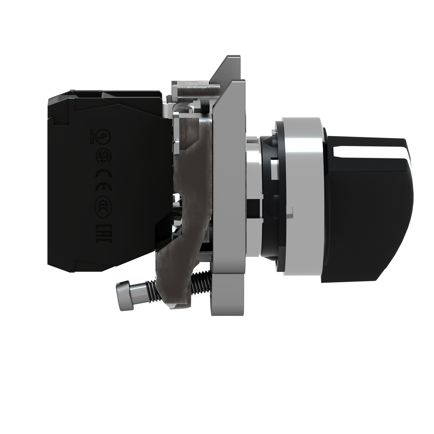 A XB4BJ21 é uma chave seletora metálica preta da linha Harmony XB4, possui 2 posições fixas, opera com mecanismo de desbloqueio por manopla longa, além de ter um contato Normalmente Aberto.Ela oferece uma interface ergonômica para controlar suas máquinas e pode ser facilmente instalada em painéis com furação padrão de 22mm de diâmetro.É resistente a impactos, poeira, água e vibração graças ao seu IP66 / IP67 / IP69 / IP69K, tornando-a ideal para operação em ambientes agressivos. Graças à sua simplicidade de instalação,,flexibilidade e robustez, atende aos requisitos da maioria das aplicações industriais, dentre elas podemos citar: Mineradoras, Petroleiras, Máquinas de usinagem e embalagem, Indústrias automotivas e de Tratamento de água.