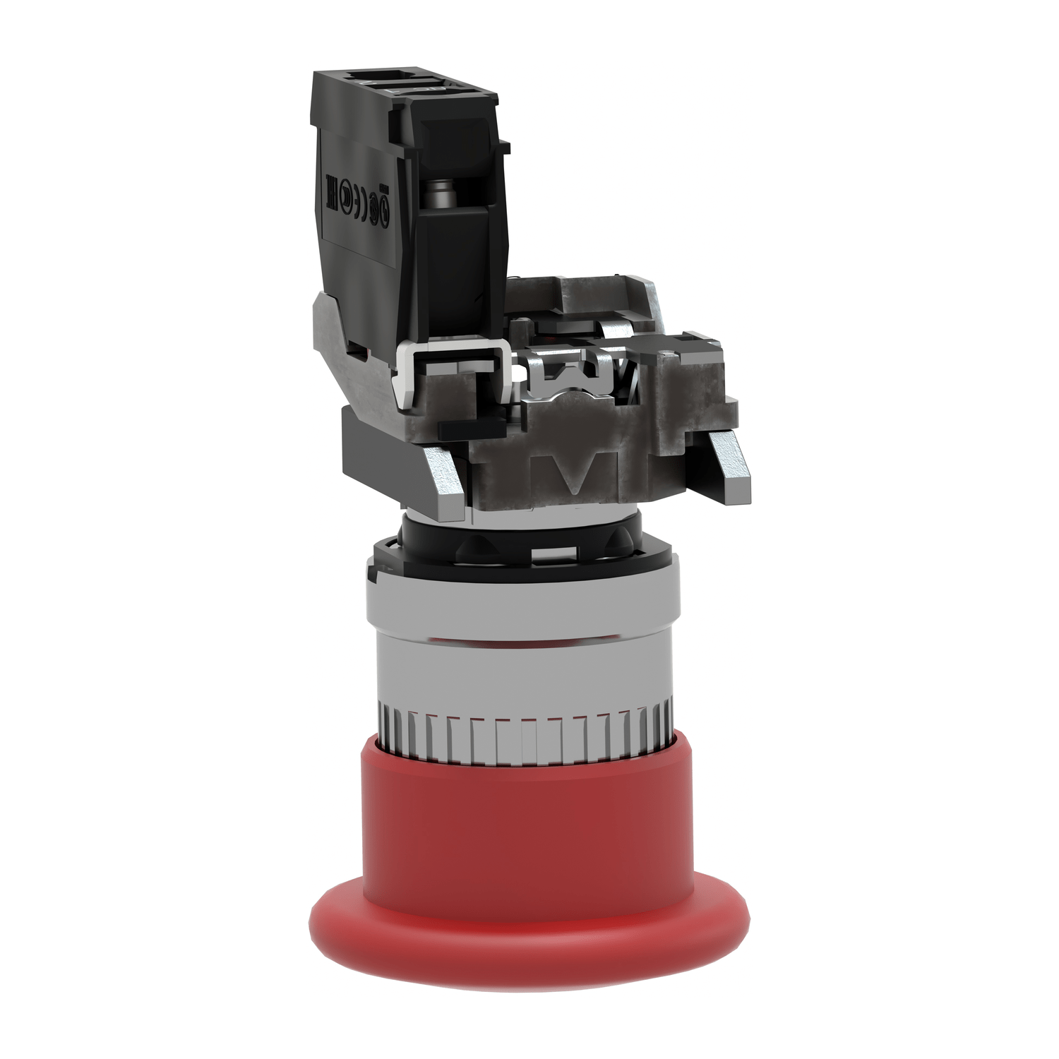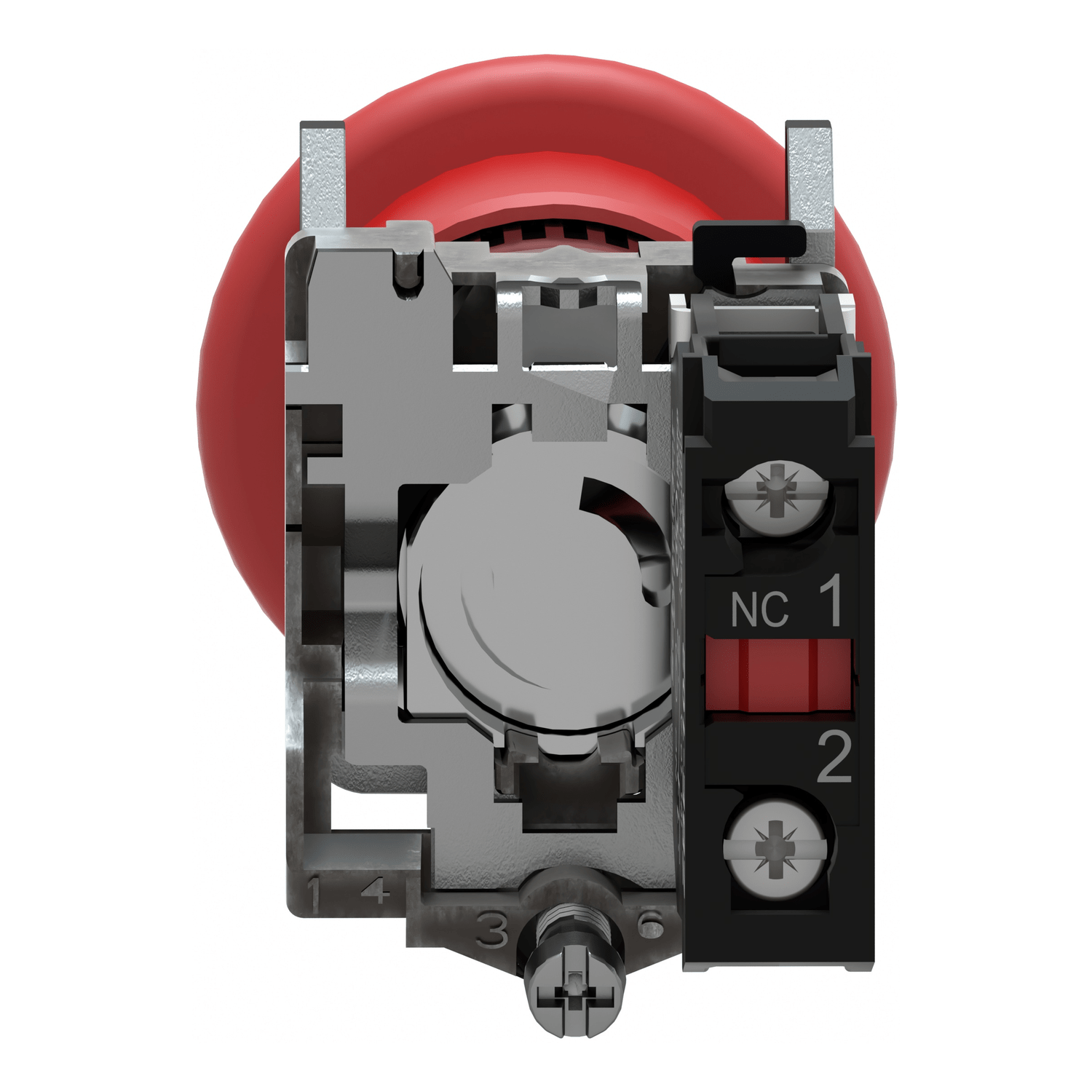 O XB4BT842 é um botão metálico de emergência, com cabeçote cogumelo de Ø40mm, vermelho da linha Harmony XB4, que opera com mecanismo de puxar para destravar e possui um contato Normalmente Fechado.,Ele oferece uma interface ergonômica para controlar suas máquinas e pode ser facilmente instalado em painéis com furação padrão de 22mm de diâmetro.,É resistente a impactos, poeira, água e vibração graças ao seu IP66 / IP67 / IP69 / IP69K, tornando-a ideal para operação em ambientes agressivos.,Graças à sua simplicidade de instalação, flexibilidade e robustez, atende aos requisitos da maioria das aplicações industriais, dentre elas podemos citar:,Mineradoras, Petroleiras, Máquinas de usinagem e embalagem, Indústrias automotivas e de Tratamento de água.