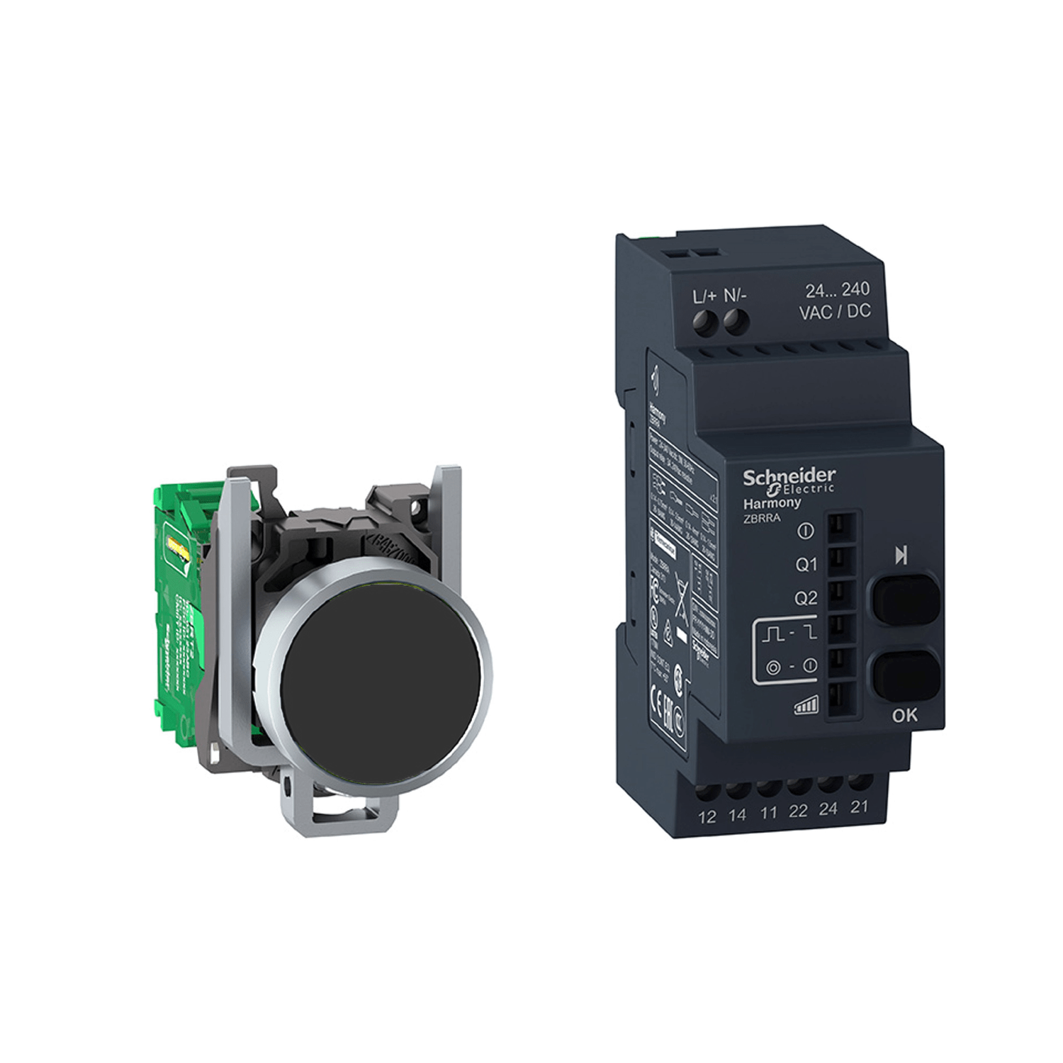 O XB4RFA02 é o conjunto de botão e unidade receptora sem fio e sem bateria Harmony XB4 e é fornecido com um conjunto de 10 tampas coloridas e usa uma entrada de 24 V a 240 V CA.Possui uma moldura de metal.Este botão sem fio sem bateria oferece uma solução simples e confiável para controle remoto de máquinas, transportadores e guindastes.O botão é facilmente instalado em recortes de painel padrão de 22 mm de diâmetro, enquanto o receptor pode ser montado em trilho DIN.