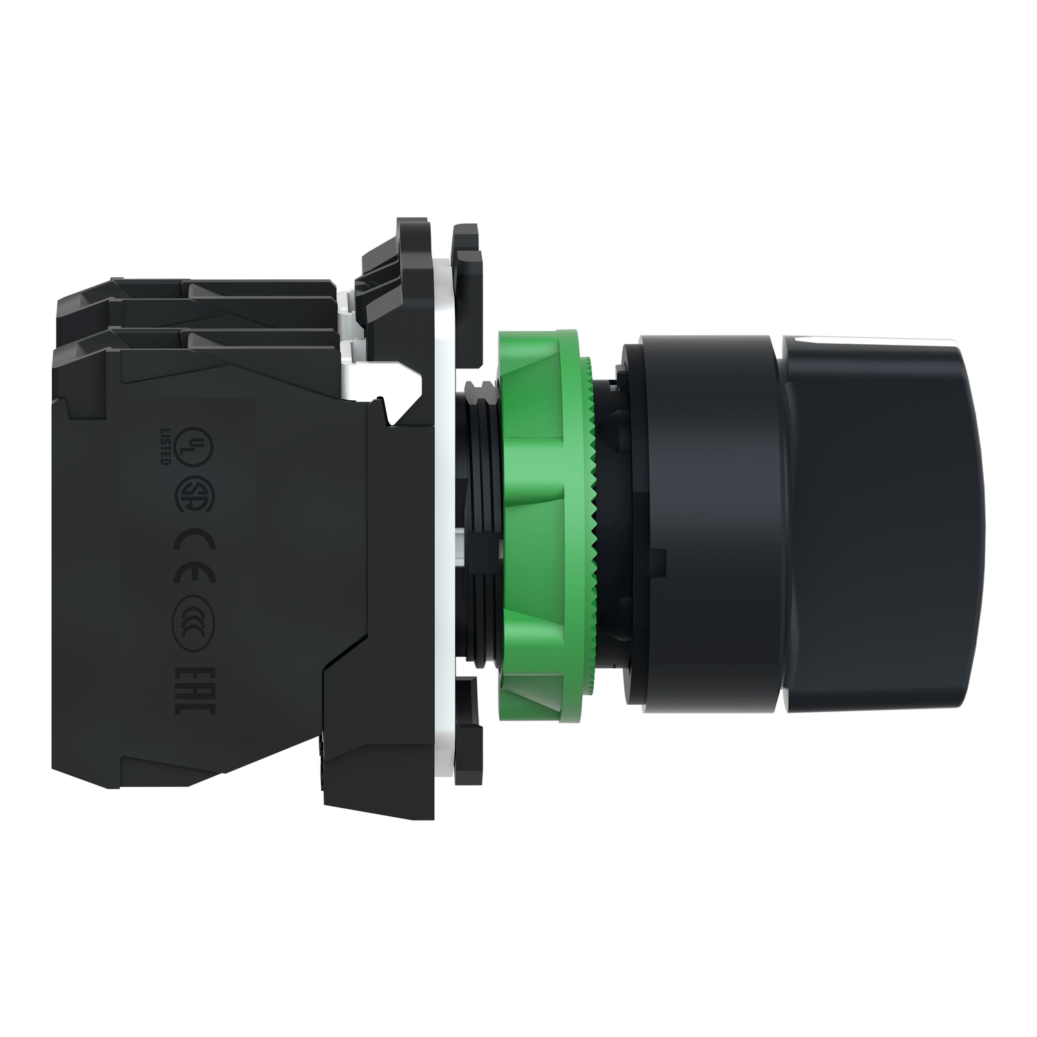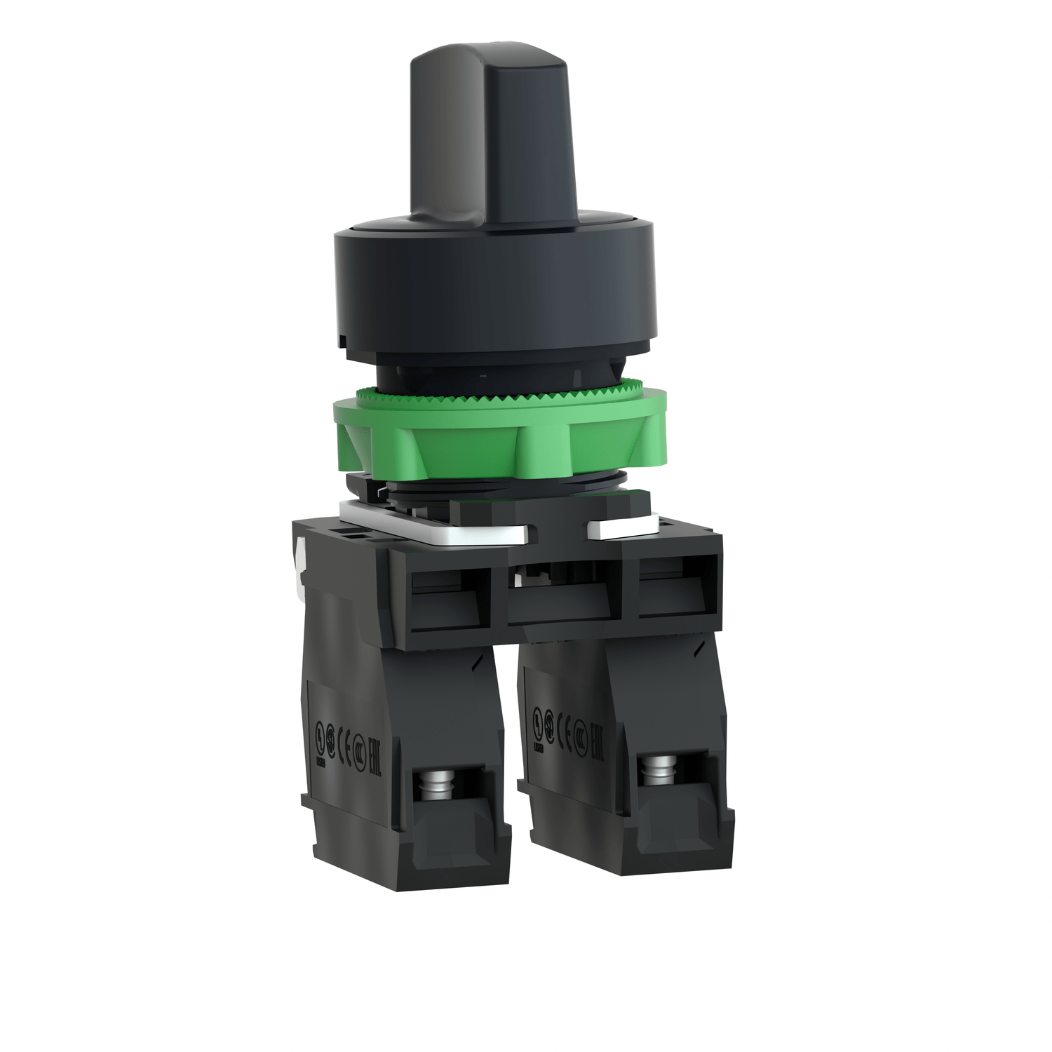 A XB5AD53 é uma chave seletora plástica preta da linha Harmony XB5, possui 3 posições retorno por mola, opera com mecanismo de desbloqueio por manopla curta, além de ter dois contatos Normalmente Aberto.Ela oferece uma interface ergonômica para controlar suas máquinas e pode ser facilmente instalada em painéis com furação padrão de 22mm de diâmetro.É resistente a impactos, poeira, água e vibração graças ao seu IP66 / IP67 / IP69 / IP69K, tornando-a ideal para operação em ambientes agressivos.Graças à sua simplicidade de instalação, flexibilidade e robustez, atende aos requisitos da maioria das aplicações industriais, dentre elas podemos citar:,Indústria de alimentos e bebidas, Indústrias químicas, Painéis de distribuição de energia.