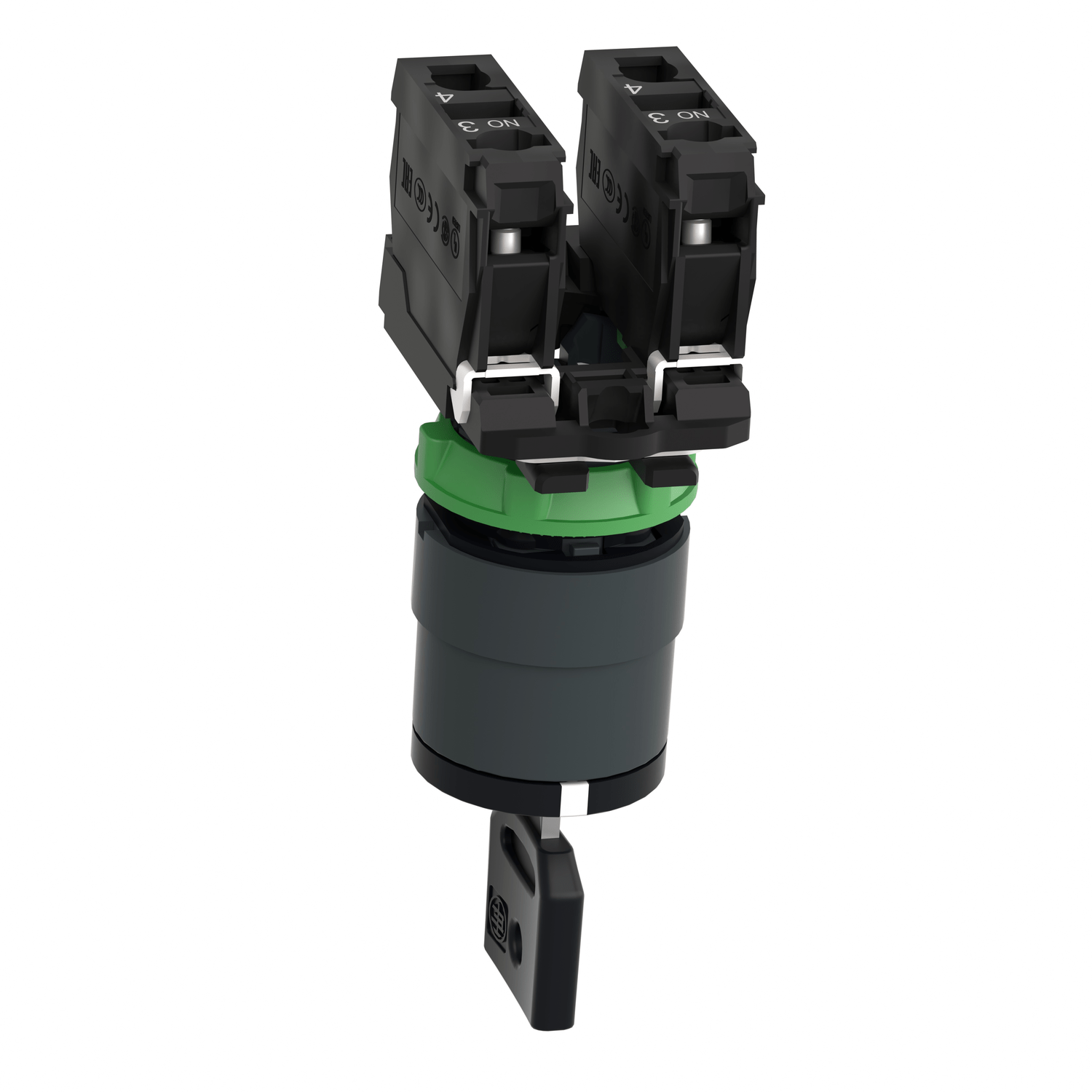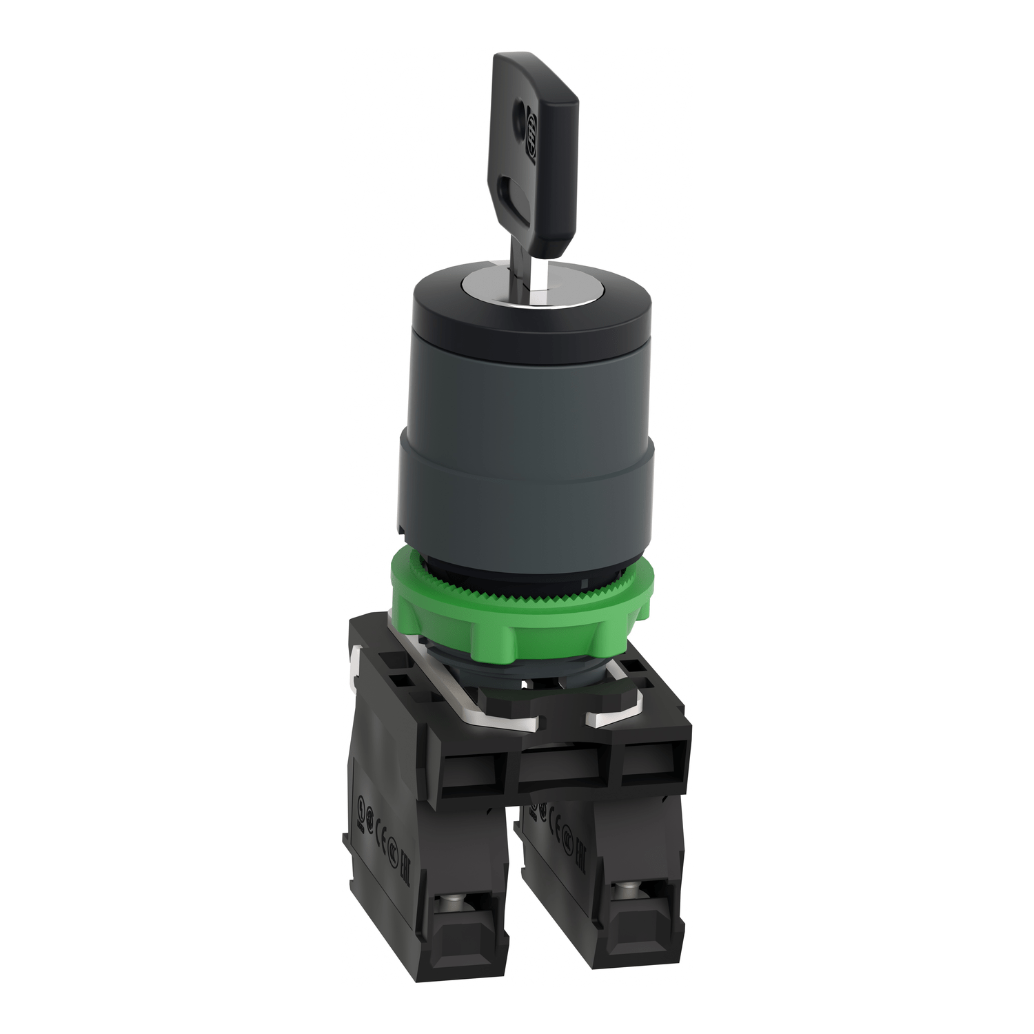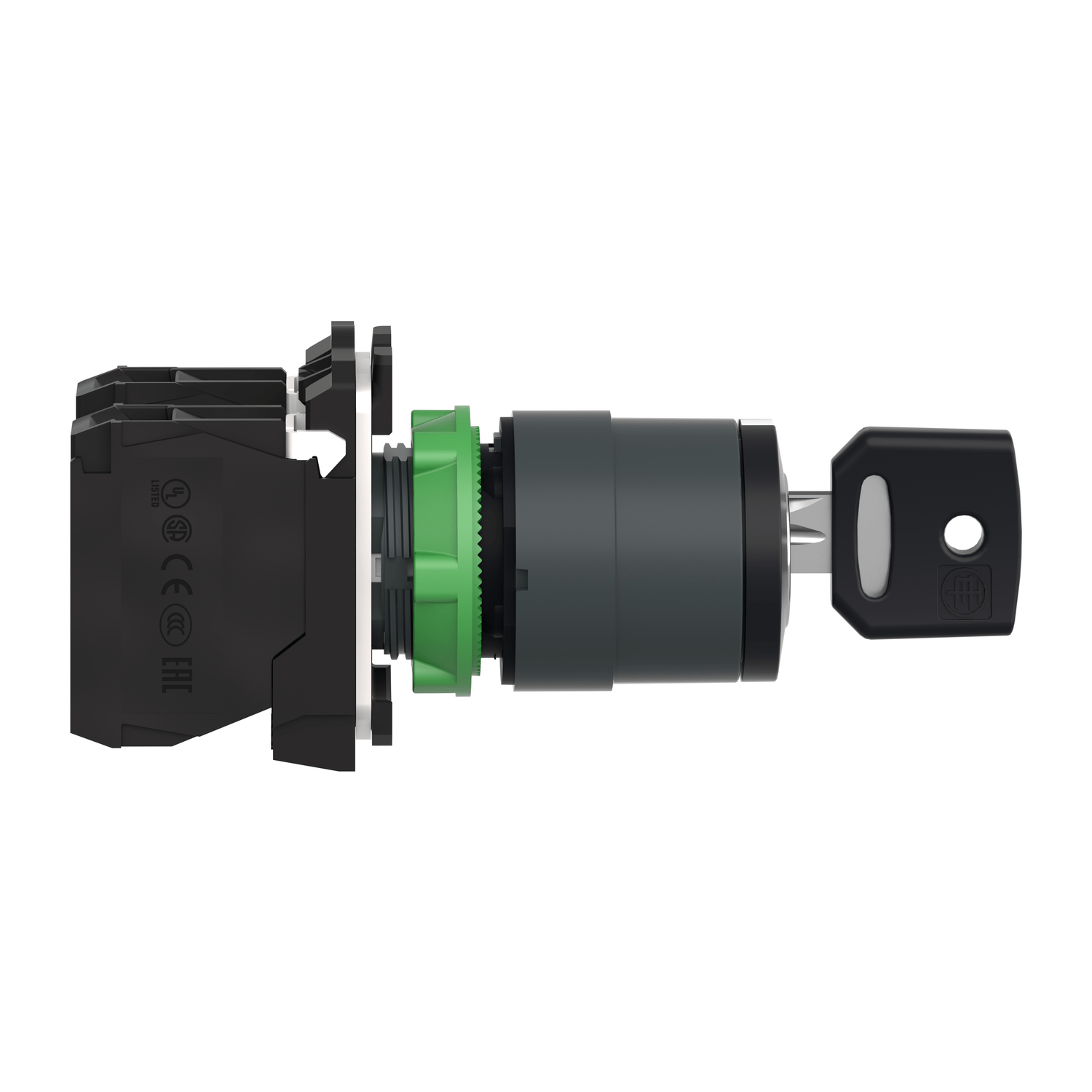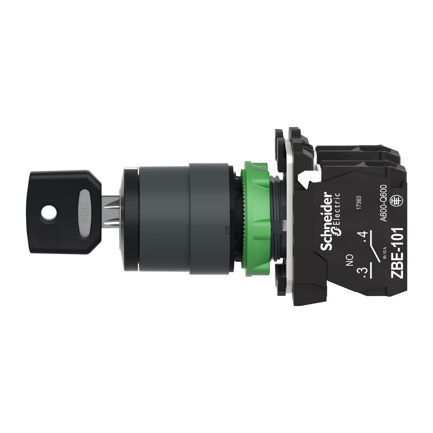 A XB5AG03 é uma chave seletora plástica preta da linha Harmony XB5, possui 3 posições fixas, opera com mecanismo de desbloqueio por chave, além de ter dois contatos Normalmente Aberto.Ela oferece uma interface ergonômica para controlar suas máquinas e pode ser facilmente instalada em painéis com furação padrão de 22mm de diâmetro.É resistente a impactos, poeira, água e vibração graças ao seu IP66 / IP67 / IP69 / IP69K, tornando-a ideal para operação em ambientes agressivos.Graças à sua simplicidade de instalação, flexibilidade e robustez, atende aos requisitos da maioria das aplicações industriais, dentre elas podemos citar:,Indústria de alimentos e bebidas, Indústrias químicas, Painéis de distribuição de energia.