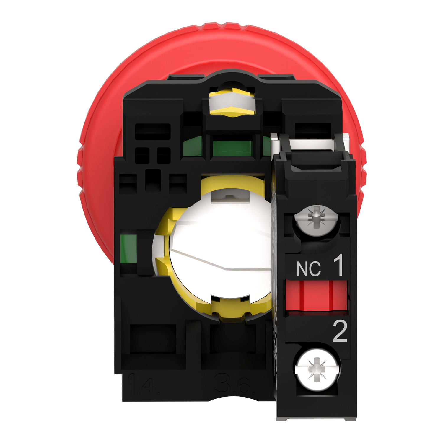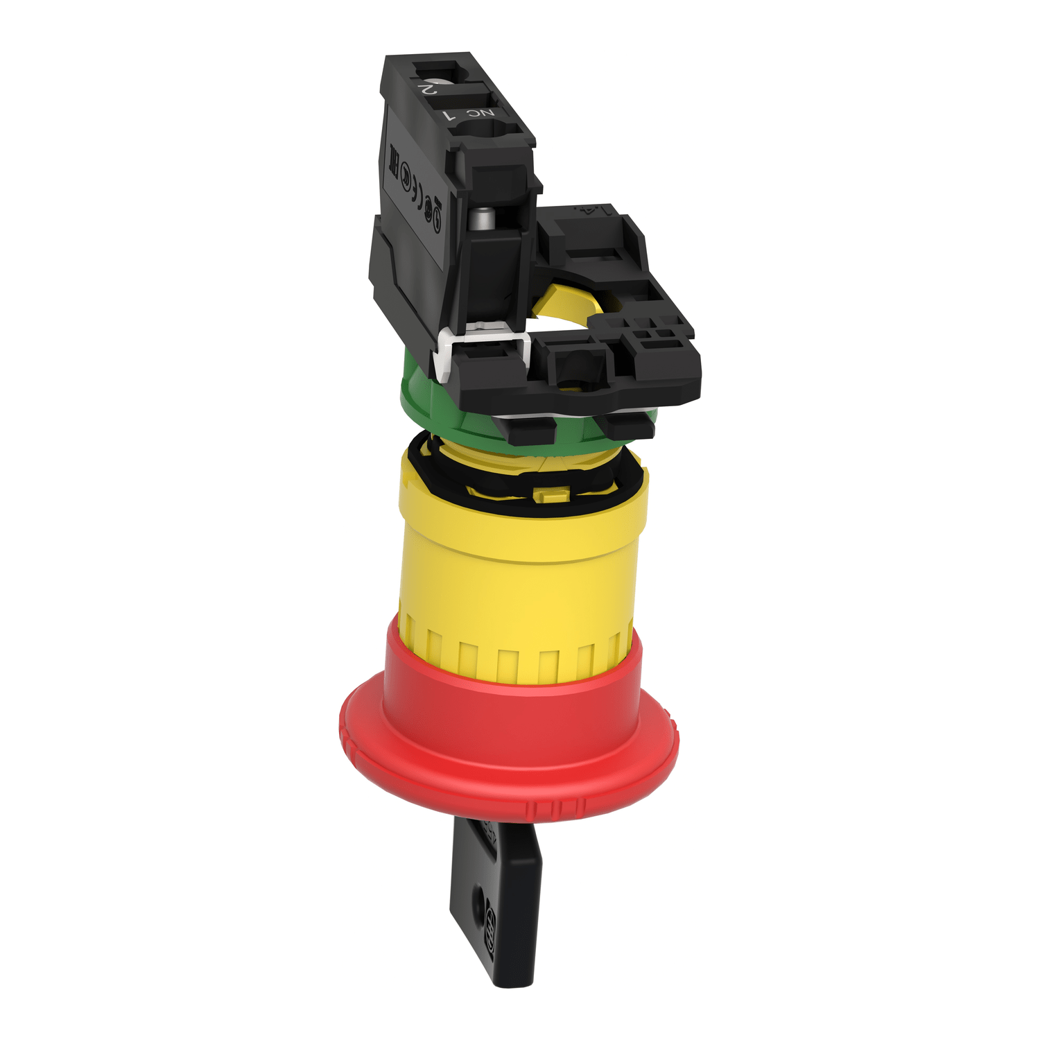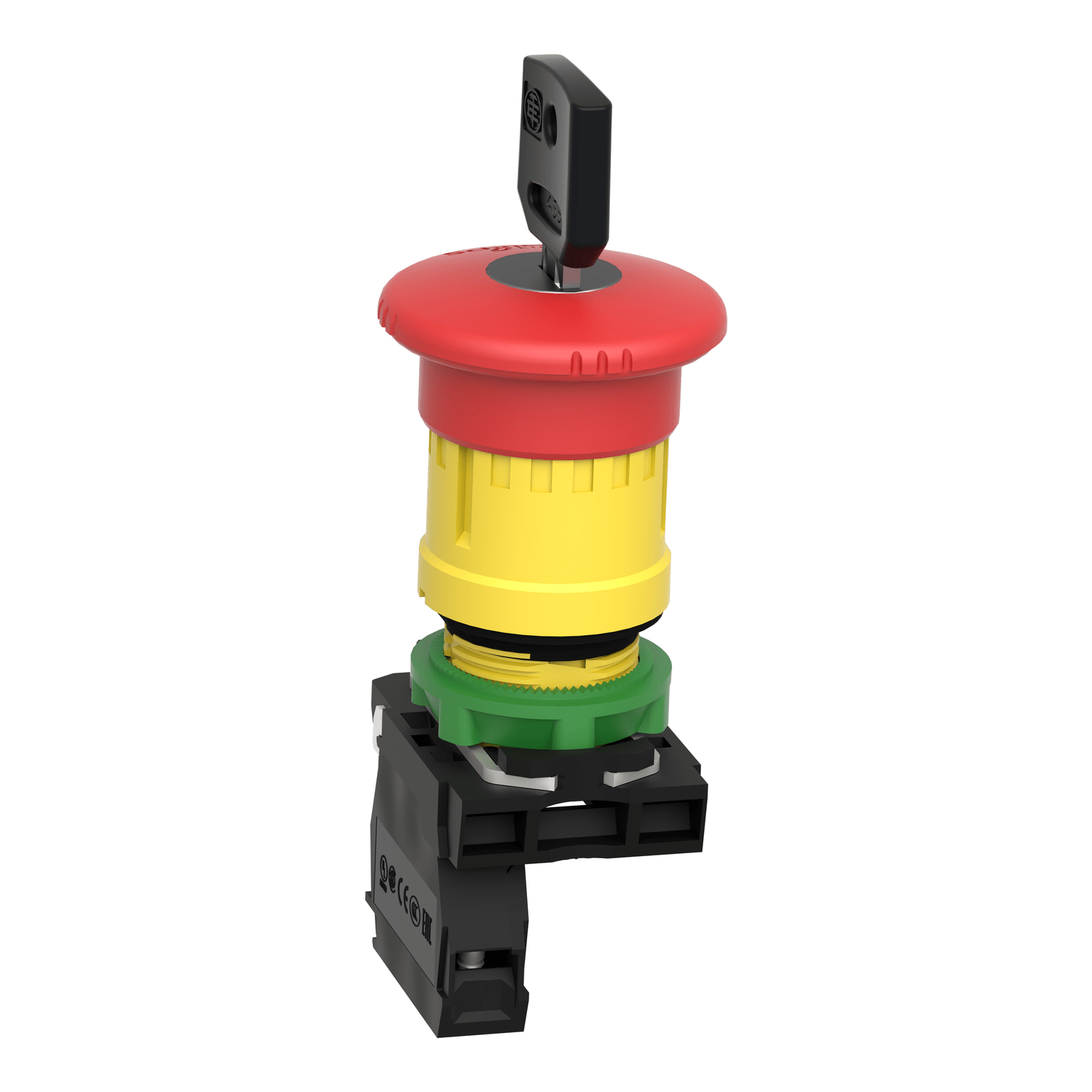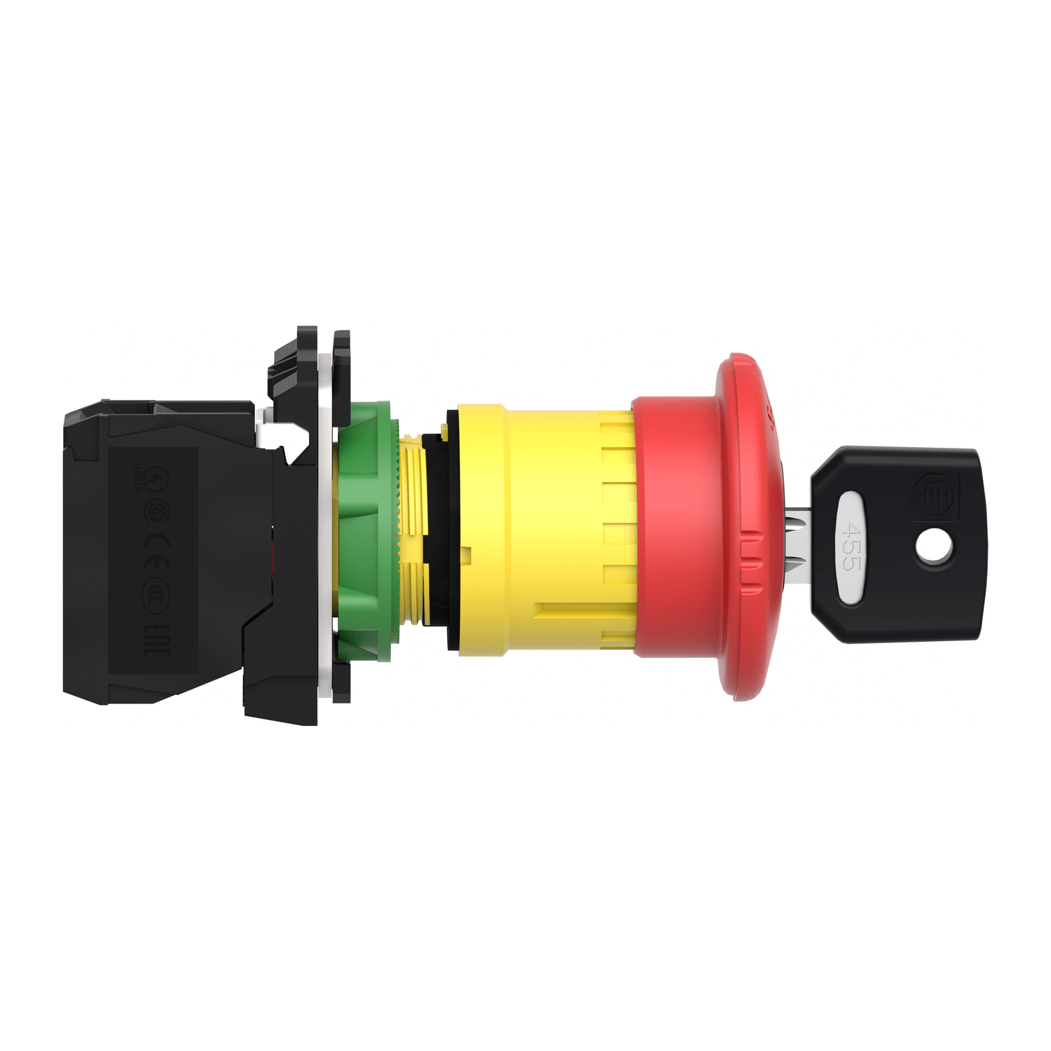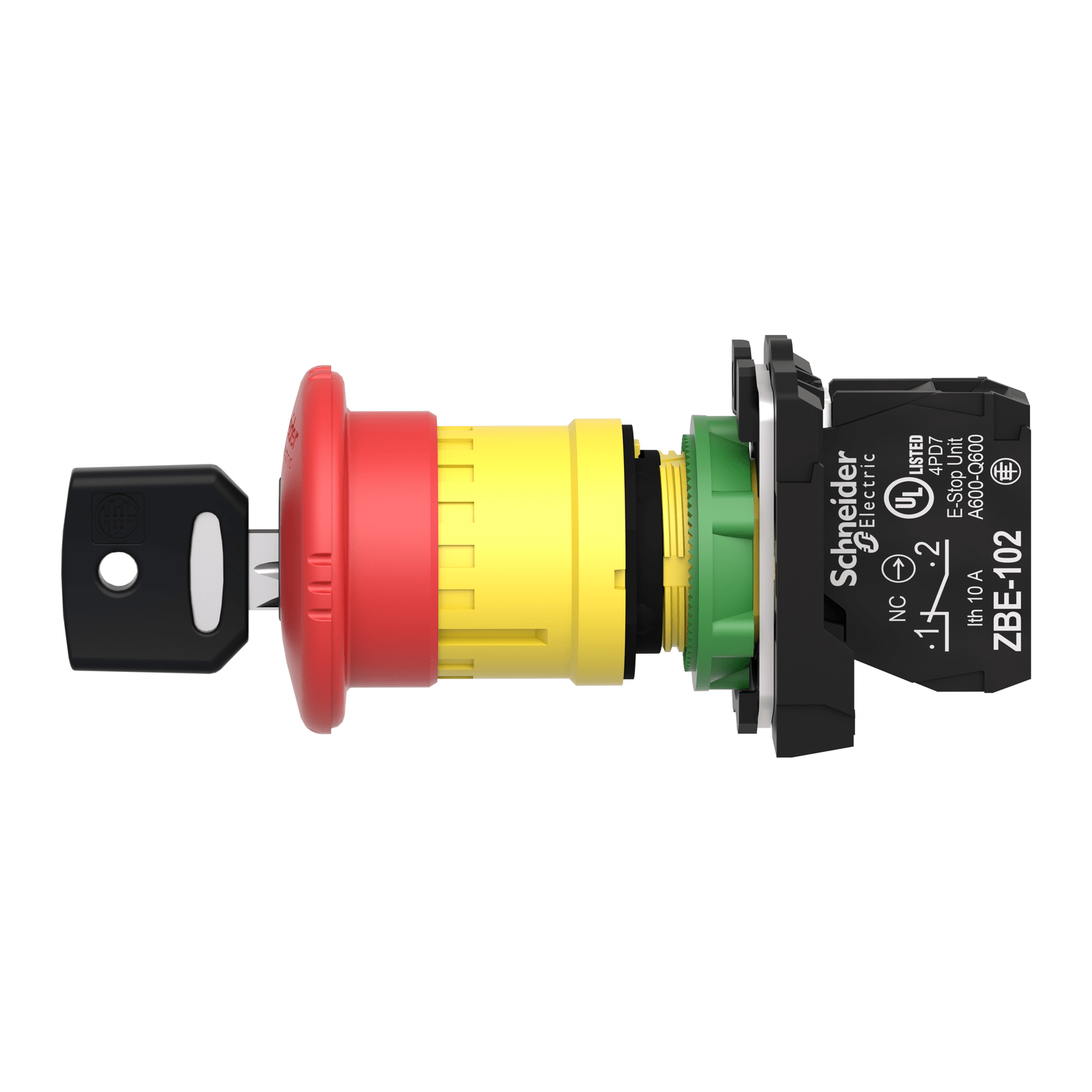 O XB5AS9442 é um botão plástico de emergência, com cabeçote cogumelo de Ø40mm, vermelho da linha Harmony XB5 que opera com mecanismo de chave para destravar e possui um contato Normalmente Fechado.Ele oferece uma interface ergonômica para controlar suas máquinas e pode ser facilmente instalado em painéis com furação padrão de 22mm de diâmetro.É resistente a impactos, poeira, água e vibração graças ao seu IP66 / IP67 / IP69 / IP69K, tornando-o ideal para todas as aplicações, em especial as que exigem resistência a agentes químicos e isolamento elétrico duplo.Graças à sua simplicidade de instalação, flexibilidade e robustez, atende aos requisitos da maioria das aplicações industriais, dentre elas podemos citar:,Indústria de alimentos e bebidas, Indústrias químicas, Painéis de distribuição de energia.