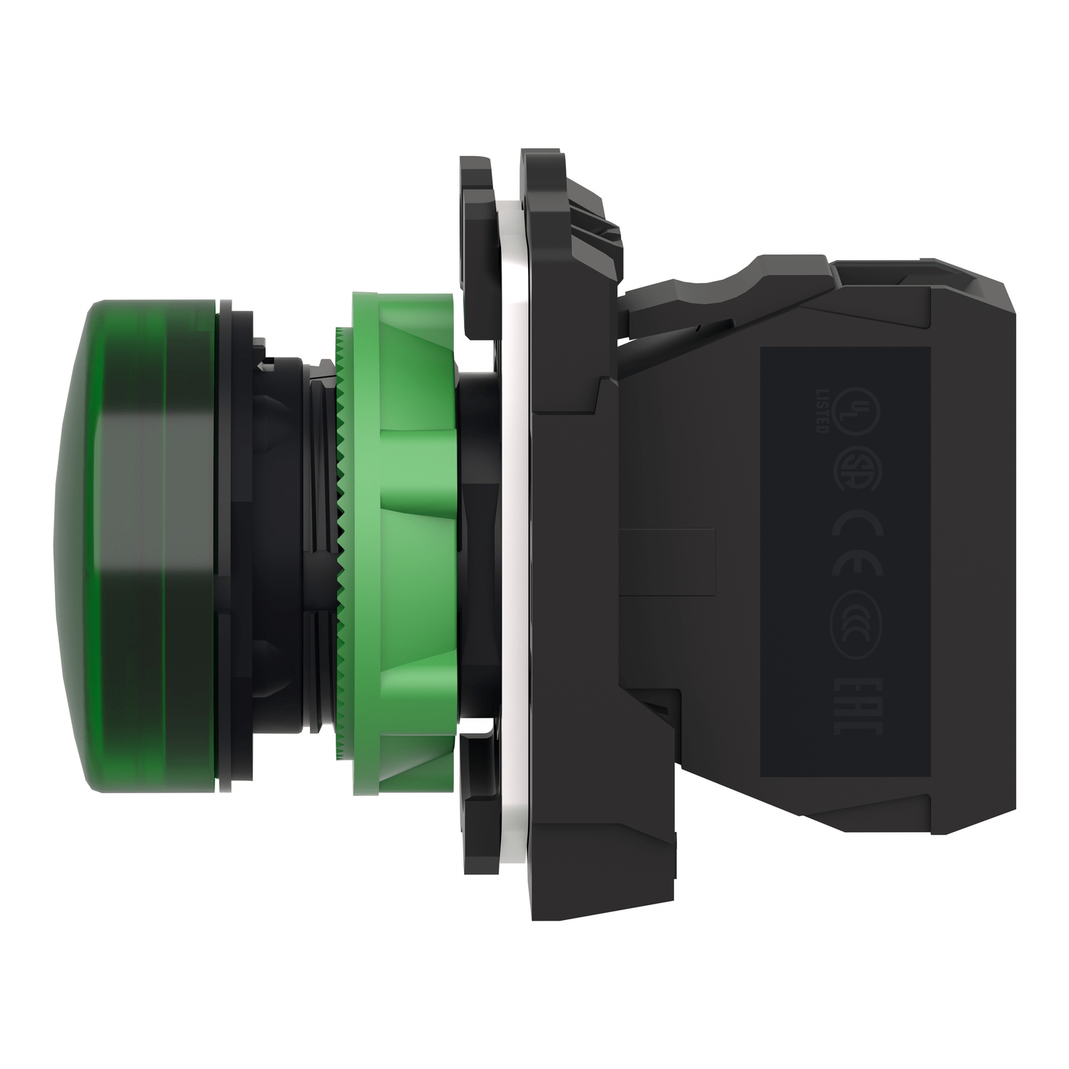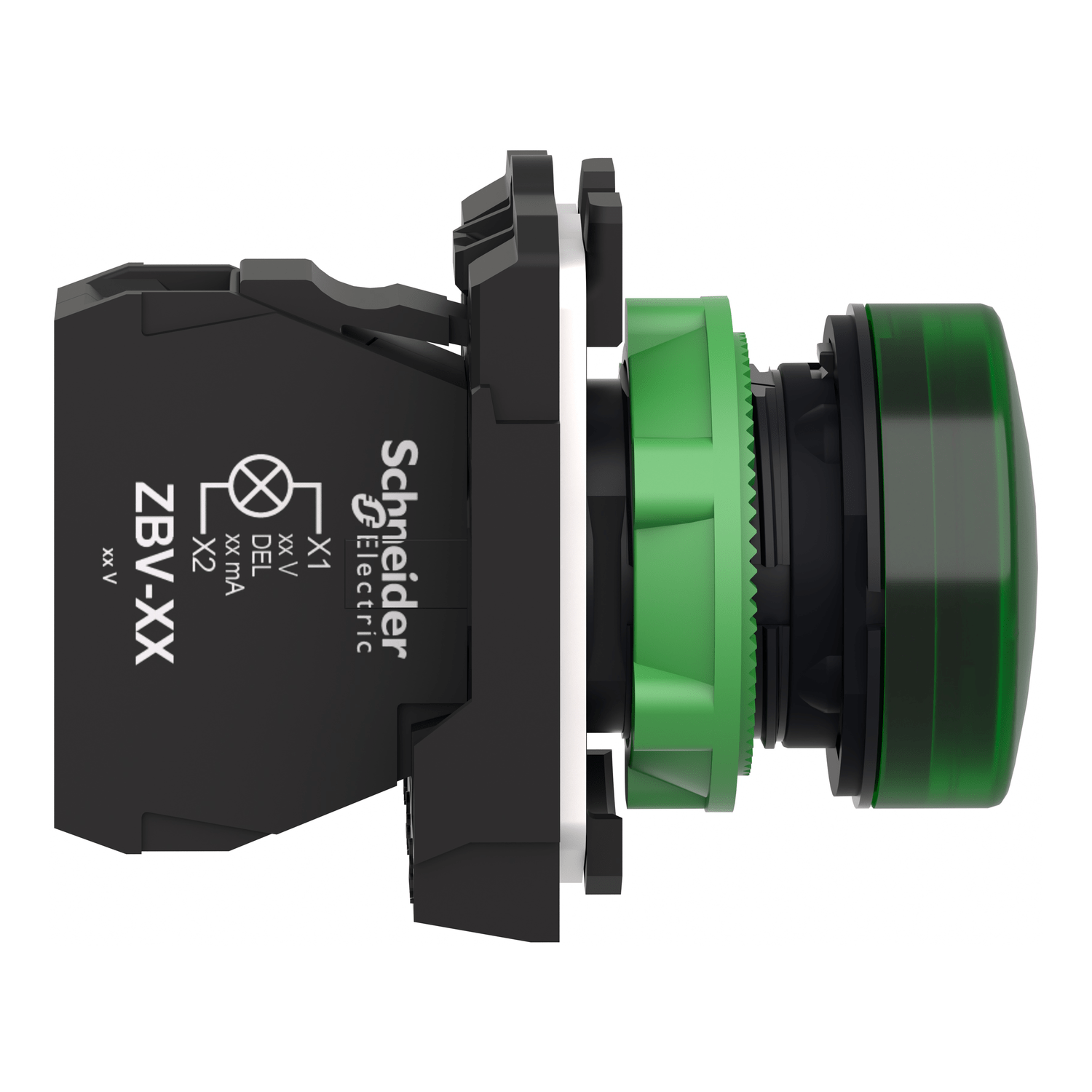 O XB5AV63 é um sinalizador plástico verde da linha Harmony XB5, sua tensão de funcionamento é de ≤250V e utiliza a tecnologia de lâmpada BA9s integrada.É projetado para indicar de forma clara o status do processo e das operações da máquina, pode ser facilmente instalado em painéis com furação padrão de 22mm de diâmetro.Mesmo à distância é visualmente distinguível graças a sua,iluminação brilhante. É resistente a impactos, poeira, água e vibração graças ao seu IP66 / IP67 / IP69 / IP69K, tornando-a ideal todas as aplicações, em especial as que exigem resistência a agentes químicos e isolamento elétrico duplo.Graças à sua simplicidade de instalação, flexibilidade e robustez, atende aos requisitos da maioria das aplicações industriais, dentre elas podemos citar:,Indústria de alimentos e bebidas, Indústrias químicas, Painéis de distribuição de energia.