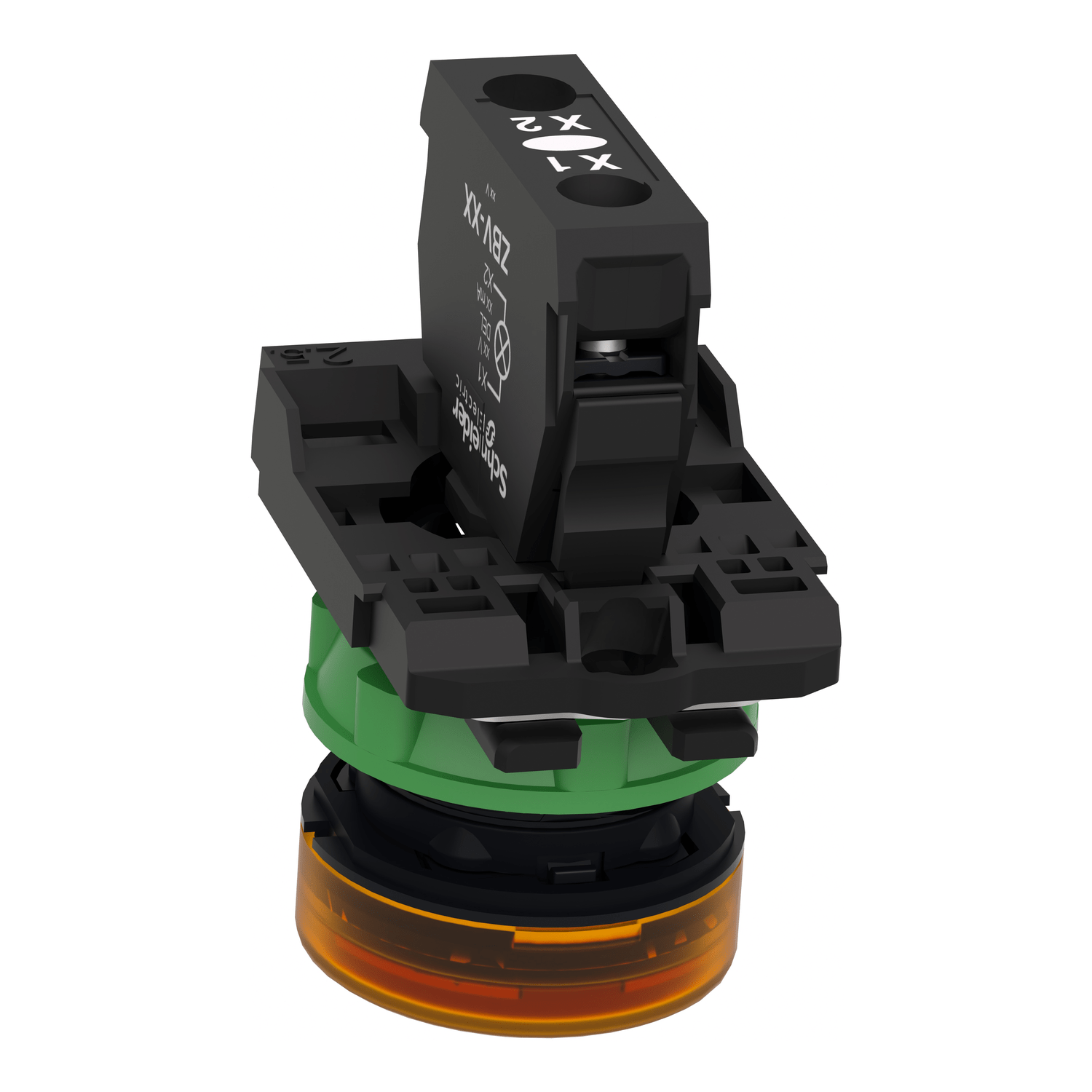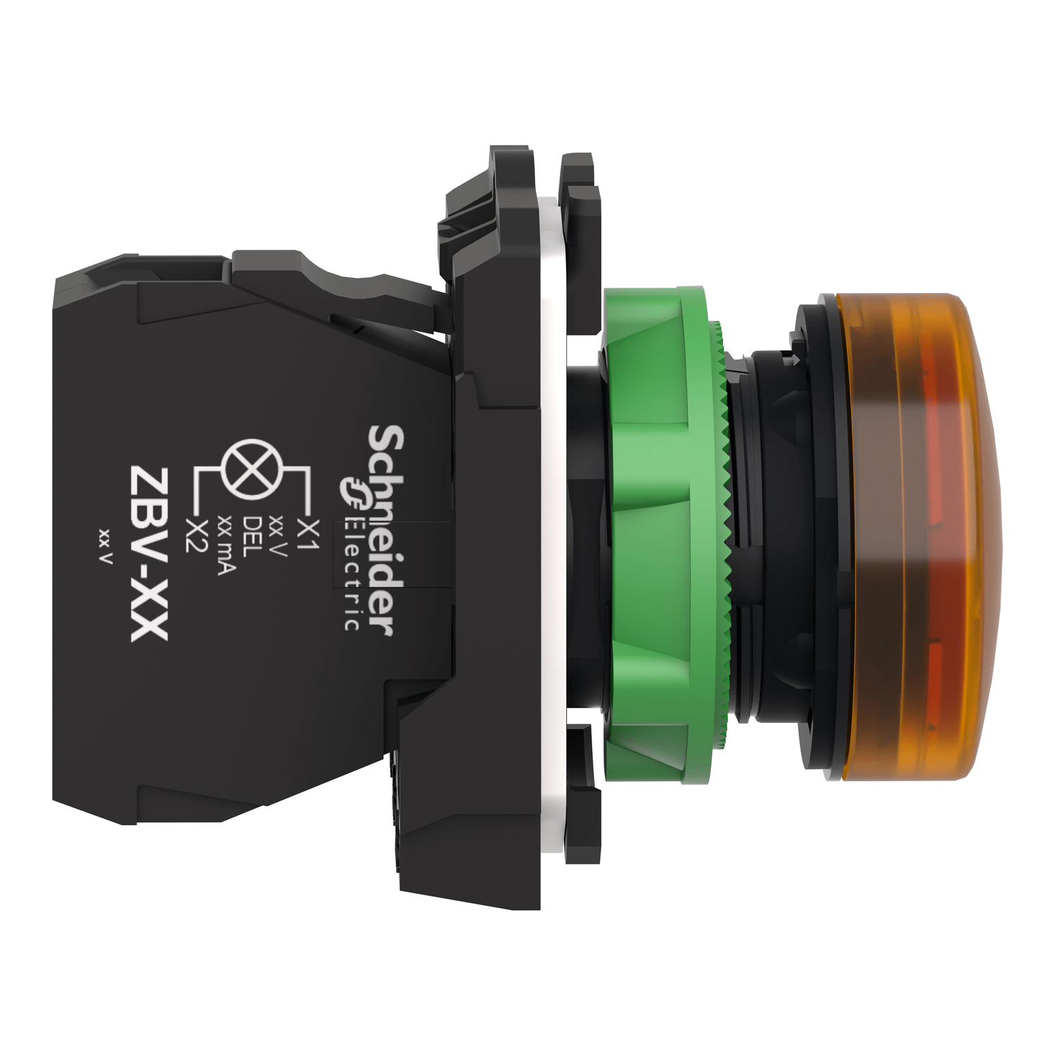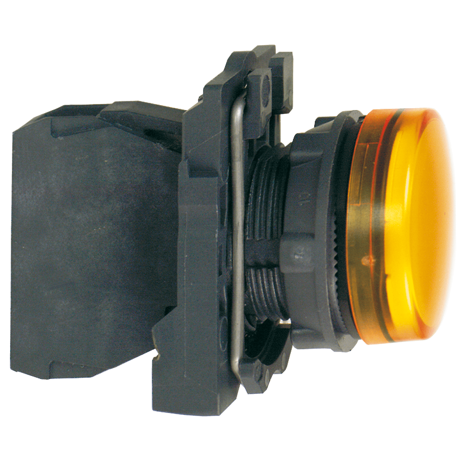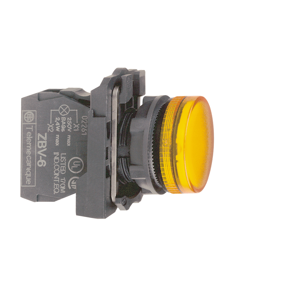 O XB5AV65 é um sinalizador plástico laranja da linha Harmony XB5, sua tensão de funcionamento é de ≤250V e utiliza a tecnologia de lâmpada BA9s integrada.É projetado para indicar de forma clara o status do processo e das operações da máquina, pode ser facilmente instalado em painéis com furação padrão de 22mm de diâmetro.Mesmo à distância é visualmente distinguível graças a sua,iluminação brilhante. É resistente a impactos, poeira, água e vibração graças ao seu IP66 / IP67 / IP69 / IP69K, tornando-a ideal todas as aplicações, em especial as que exigem resistência a agentes químicos e isolamento elétrico duplo.Graças à sua simplicidade de instalação, flexibilidade e robustez, atende aos requisitos da maioria das aplicações industriais, dentre elas podemos citar:,Indústria de alimentos e bebidas, Indústrias químicas, Painéis de distribuição de energia.