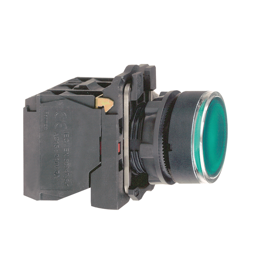 O XB5AW3365 é um botão plástico luminoso verde da linha Harmony XB5, com lâmpada ≤250V, que opera com mecanismo de retorno por mola e possui um contato Normalmente Aberto e um Normalmente Fechado.Ele oferece uma interface ergonômica para controlar suas máquinas e pode ser facilmente instalado em painéis com furação padrão de 22mm de diâmetro.É resistente a impactos, poeira, água e vibração graças ao seu IP66 / IP67 / IP69 / IP69K, tornando-o ideal para todas as aplicações, em especial as que exigem resistência a agentes químicos e isolamento elétrico duplo.Graças à sua simplicidade de instalação, flexibilidade e robustez, atende aos requisitos da maioria das aplicações industriais, dentre elas podemos citar:,Indústria de alimentos e bebidas, Indústrias químicas, Painéis de distribuição de energia.