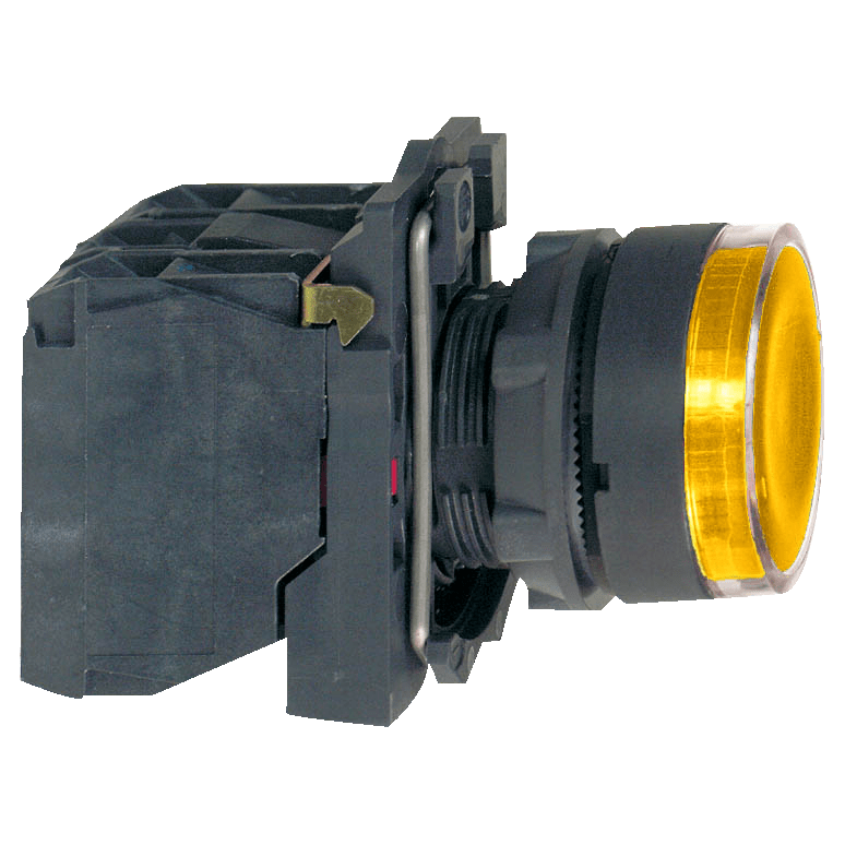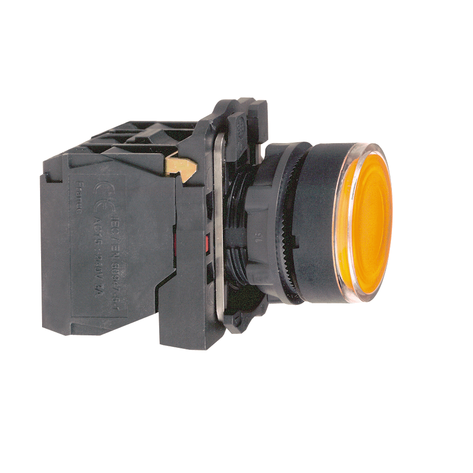 O XB5AW3565 é um botão plástico luminoso laranja da linha Harmony XB5, com alimentação 250V, que opera com mecanismo de retorno por mola e possui um contato Normalmente Aberto e um Normalmente Fechado.Ele oferece uma interface ergonômica para controlar suas máquinas e pode ser facilmente instalado em painéis com furação padrão de 22mm de diâmetro.É resistente a impactos, poeira, água e vibração graças ao seu IP66 / IP67 / IP69 / IP69K, tornando-o ideal para todas as aplicações, em especial as que exigem resistência a agentes químicos e isolamento elétrico duplo.Graças à sua simplicidade de instalação, flexibilidade e robustez, atende aos requisitos da maioria das aplicações industriais, dentre elas podemos citar:,Indústria de alimentos e bebidas, Indústrias químicas, Painéis de distribuição de energia.