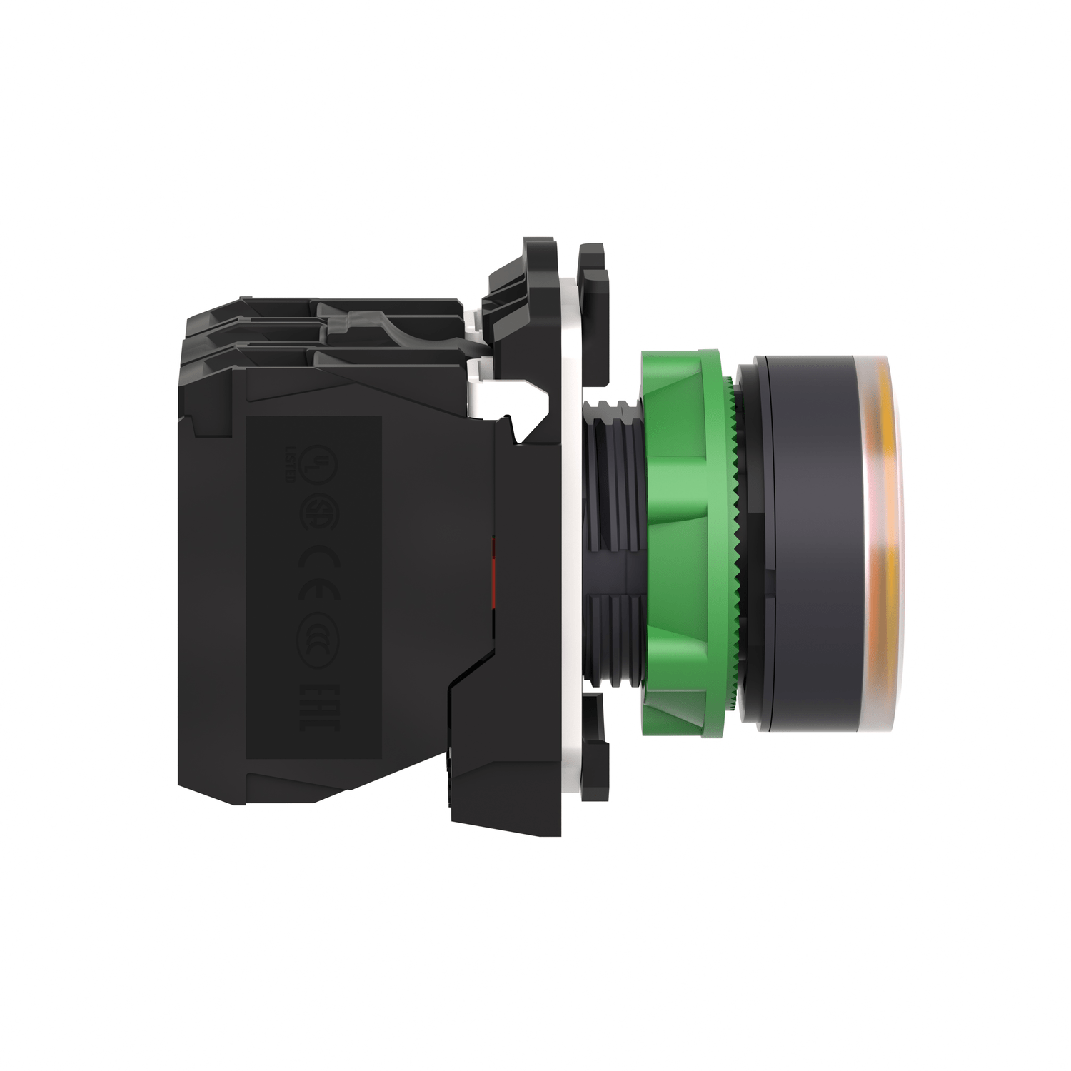 O XB5AW35B5 é um botão plástico luminoso laranja da linha Harmony XB5, com LED 24VCA/CC, que opera com mecanismo de retorno por mola e possui um contato Normalmente Aberto e um Normalmente Fechado.Ele oferece uma interface ergonômica para controlar suas máquinas e pode ser facilmente instalado em painéis com furação padrão de 22mm de diâmetro.É resistente a impactos, poeira, água e vibração graças ao seu IP66 / IP67 / IP69 / IP69K, tornando-o ideal para todas as aplicações, em especial as que exigem resistência a agentes químicos e isolamento elétrico duplo.Graças à sua simplicidade de instalação, flexibilidade e robustez, atende aos requisitos da maioria das aplicações industriais, dentre elas podemos citar:,Indústria de alimentos e bebidas, Indústrias químicas, Painéis de distribuição de energia.