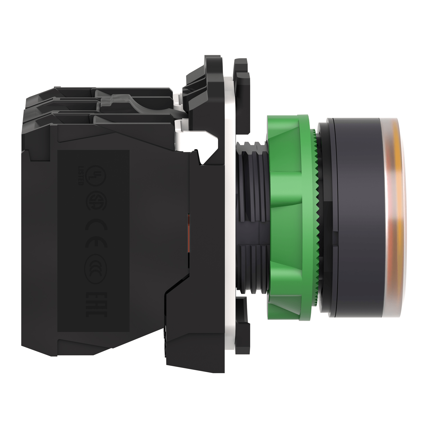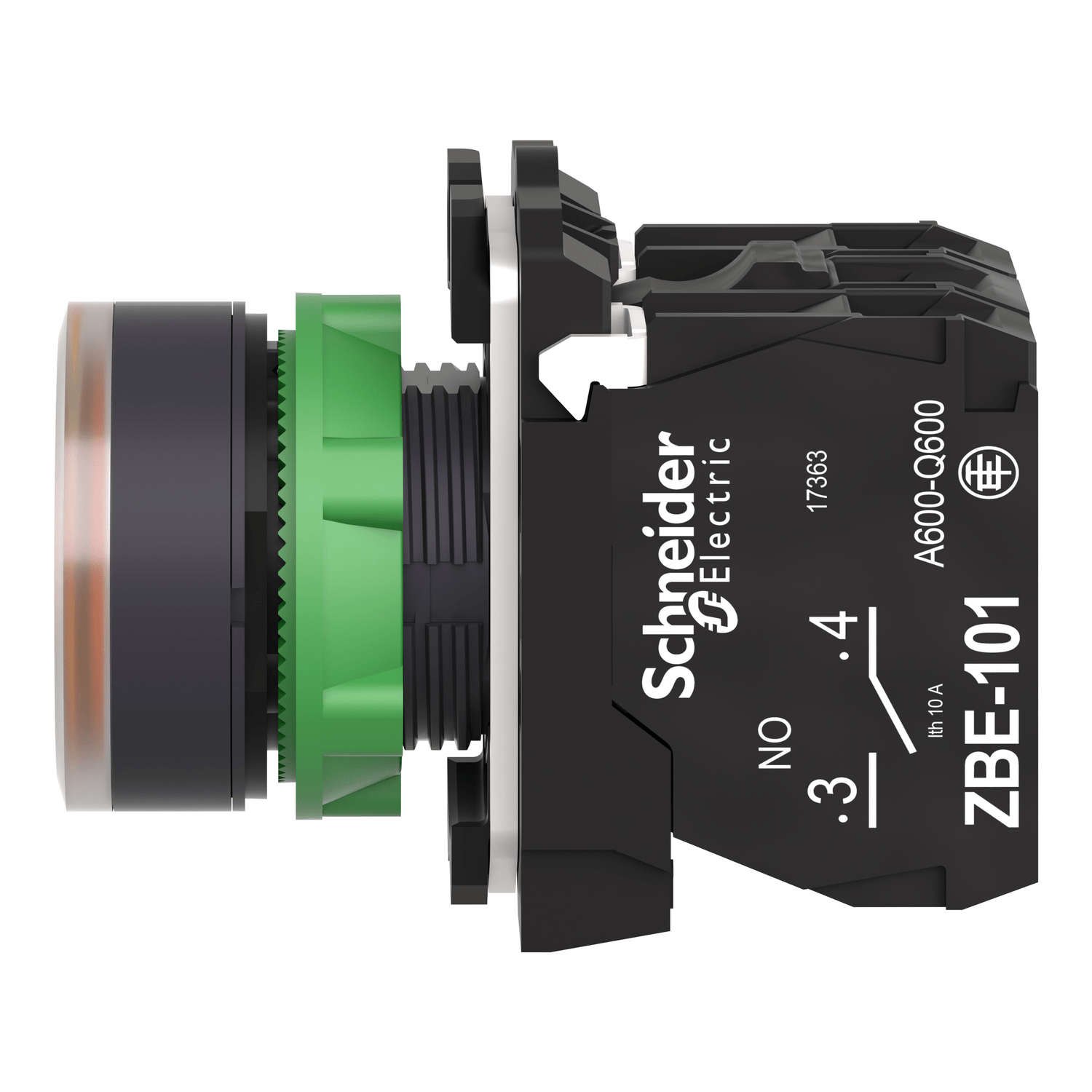 O XB5AW35M5 é um botão plástico luminoso laranja da linha Harmony XB5, com LED 230VCA, que opera com mecanismo de retorno por mola e possui um contato Normalmente Aberto e um Normalmente Fechado.Ele oferece uma interface ergonômica para controlar suas máquinas e pode ser facilmente instalado em painéis com furação padrão de 22mm de diâmetro.É resistente a impactos, poeira, água e vibração graças ao seu IP66 / IP67 / IP69 / IP69K, tornando-o ideal para todas as aplicações, em especial as que exigem resistência a agentes químicos e isolamento elétrico duplo.Graças à sua simplicidade de instalação, flexibilidade e robustez, atende aos requisitos da maioria das aplicações industriais, dentre elas podemos citar:,Indústria de alimentos e bebidas, Indústrias químicas, Painéis de distribuição de energia.