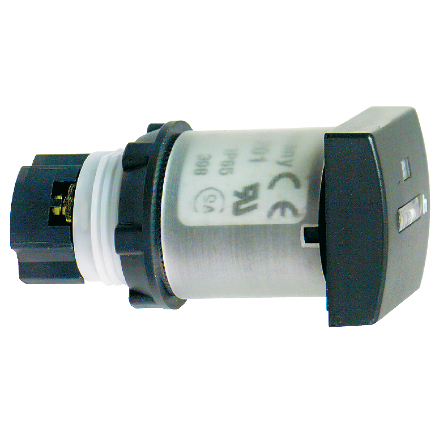 O XB5DSB é um contador de horas da linha Harmony XB5, tem 5 dígitos de exibição e é fornecido com 12V a 24V AC/DC.Este contador de horas fornece um indicador visual do número de horas de funcionamento da sua instalação.Ele oferece uma interface ergonômica para controlar suas máquinas e pode ser facilmente instalado em painéis com furação padrão de 22mm de diâmetro.É resistente a impactos, poeira, água e vibração graças ao seu IP66 / IP67 / IP69 / IP69K, tornando-o ideal para todas as aplicações, em especial as que exigem resistência a agentes químicos e isolamento elétrico duplo.Graças à sua simplicidade de instalação, flexibilidade e robustez, atende aos requisitos da maioria das aplicações industriais, dentre elas podemos citar:,Indústria de alimentos e bebidas, Indústrias químicas, Painéis de distribuição de energia.