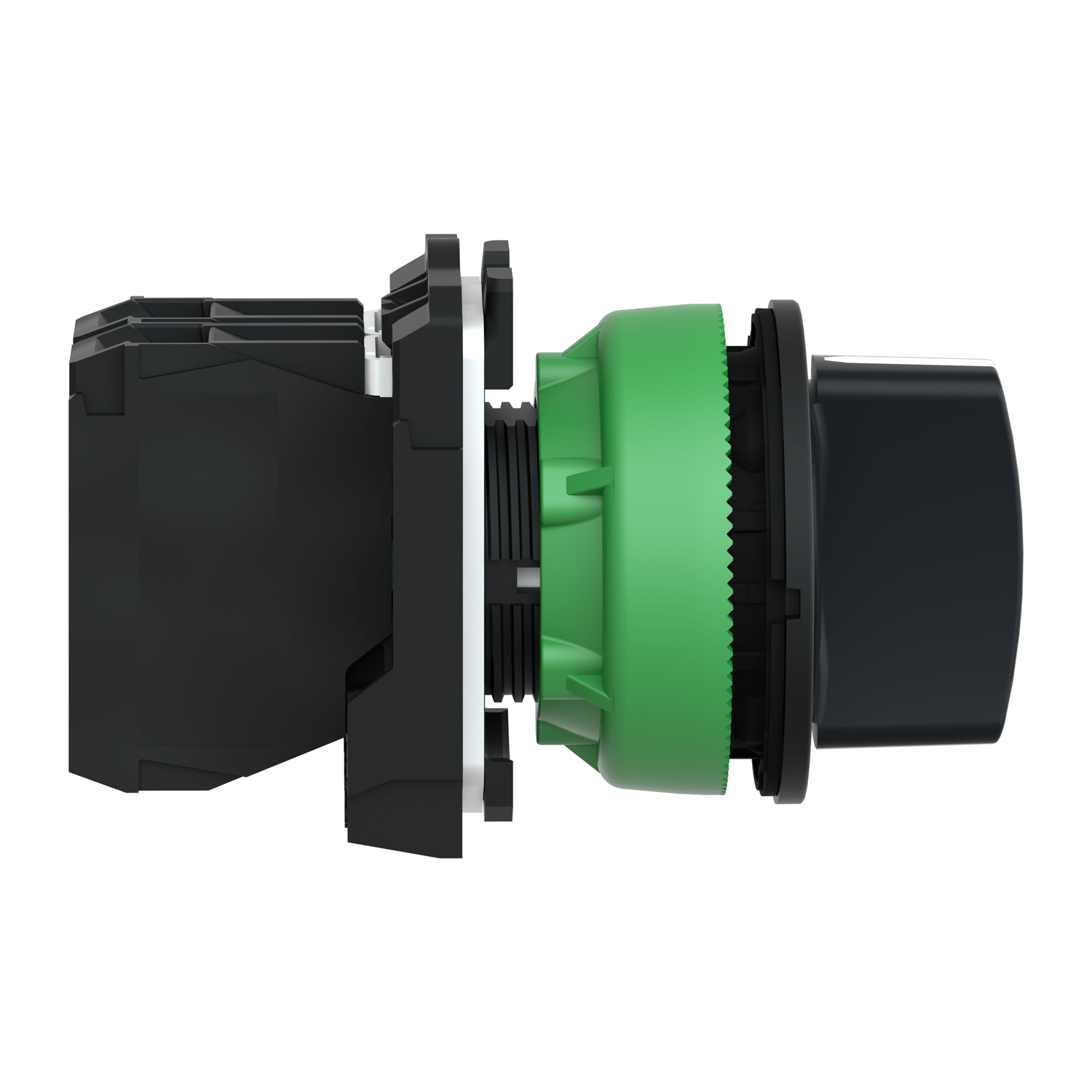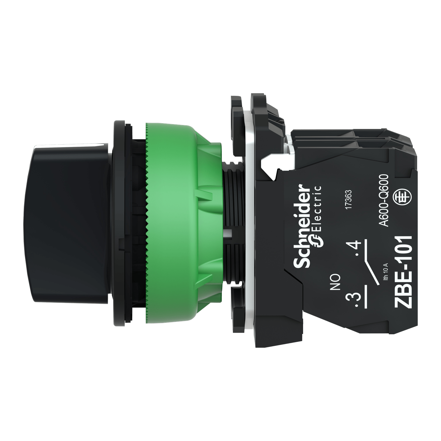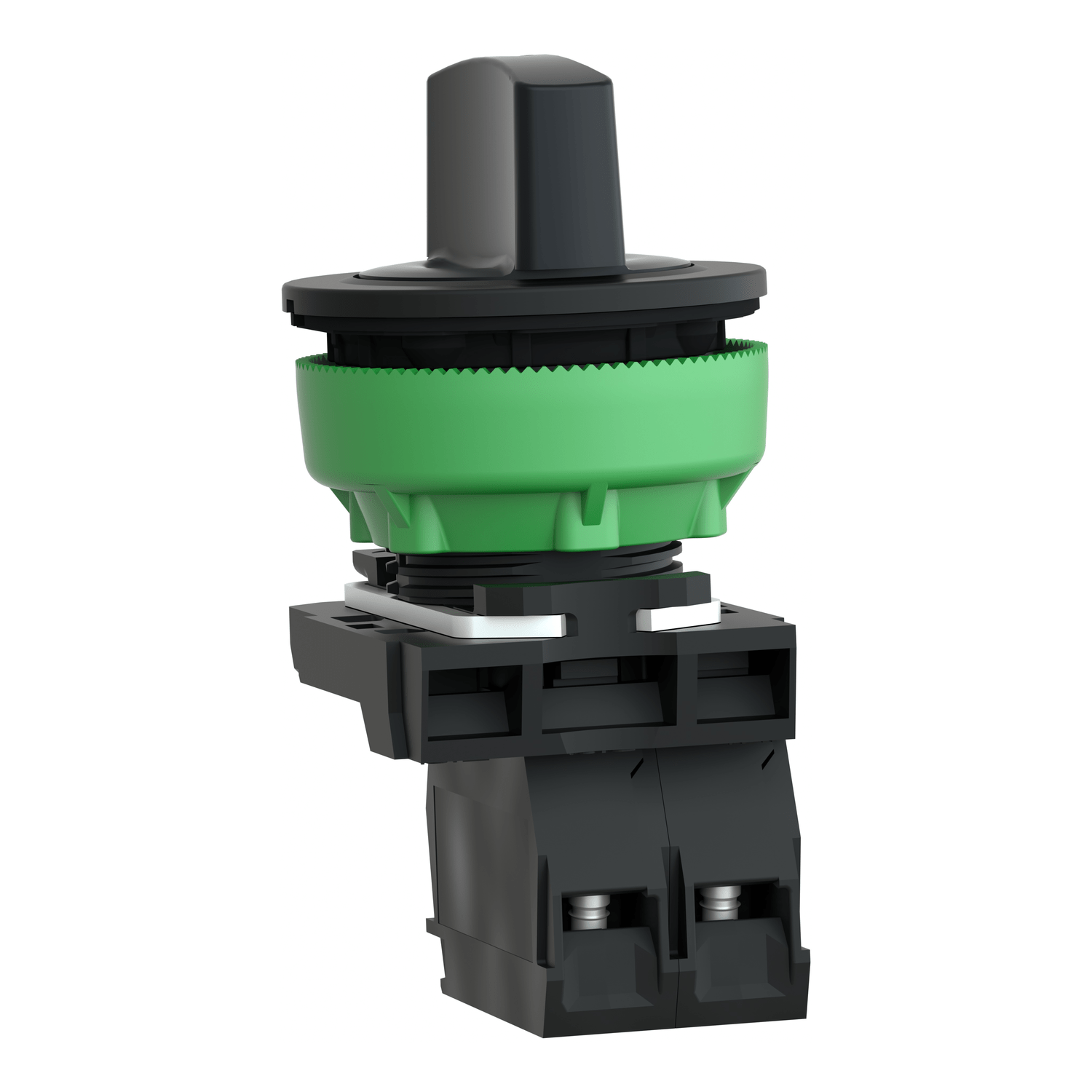 A XB5FD33 é uma chave seletora plástica preta da linha Harmony XB5, possui 3 posições fixas, opera com mecanismo de desbloqueio por manopla curta, além de ter dois contatos Normalmente Aberto.Ela oferece uma interface ergonômica para controlar suas máquinas e pode ser facilmente instalada em painéis com furação padrão de 30mm de diâmetro.É resistente a impactos, poeira, água e vibração graças ao seu IP66 / IP67 / IP69 / IP69K, tornando-a ideal para operação em ambientes agressivos.Graças à sua simplicidade de instalação, flexibilidade e robustez, atende aos requisitos da maioria das aplicações industriais, dentre elas podemos citar:,Indústria de alimentos e bebidas, Indústrias químicas, Painéis de distribuição de energia.
