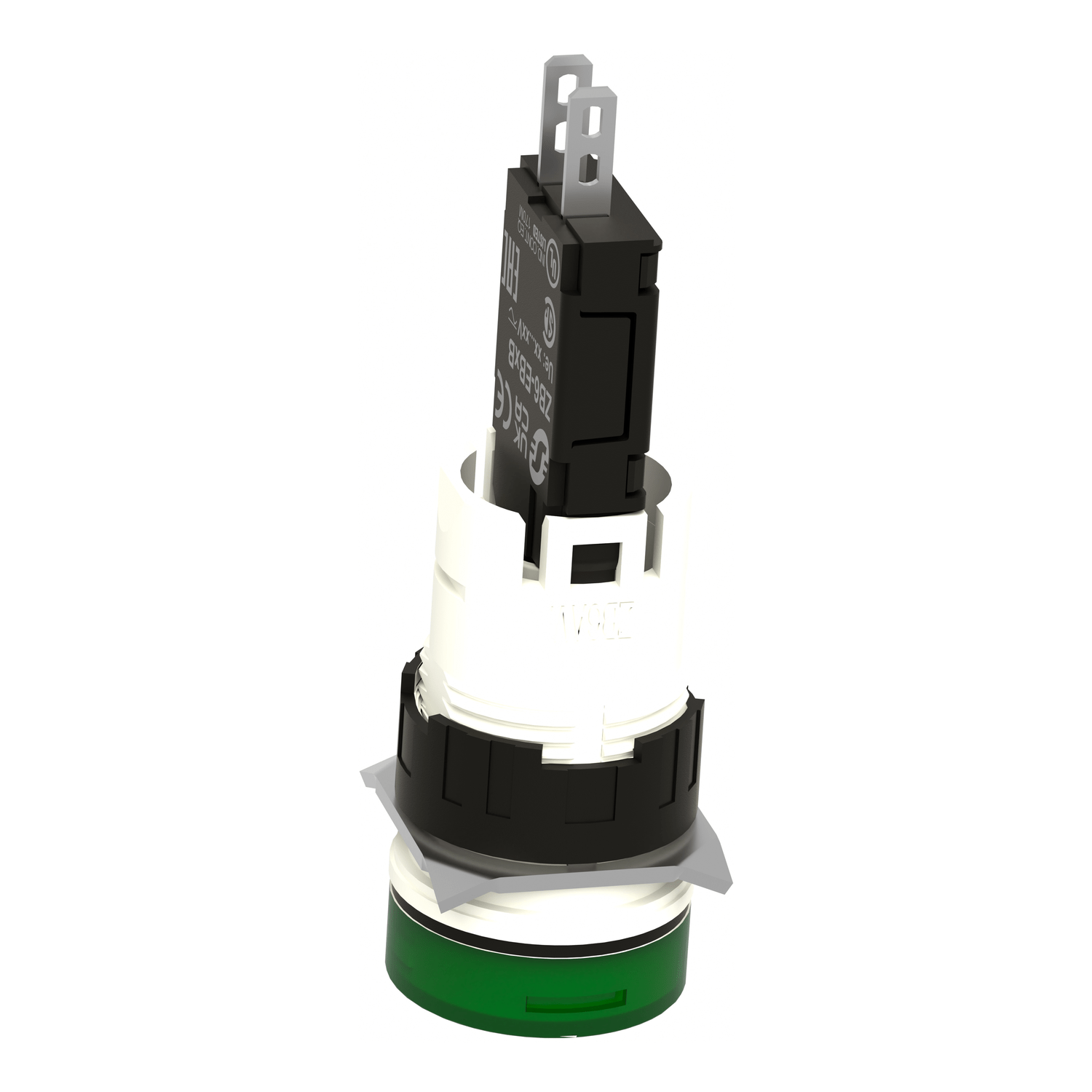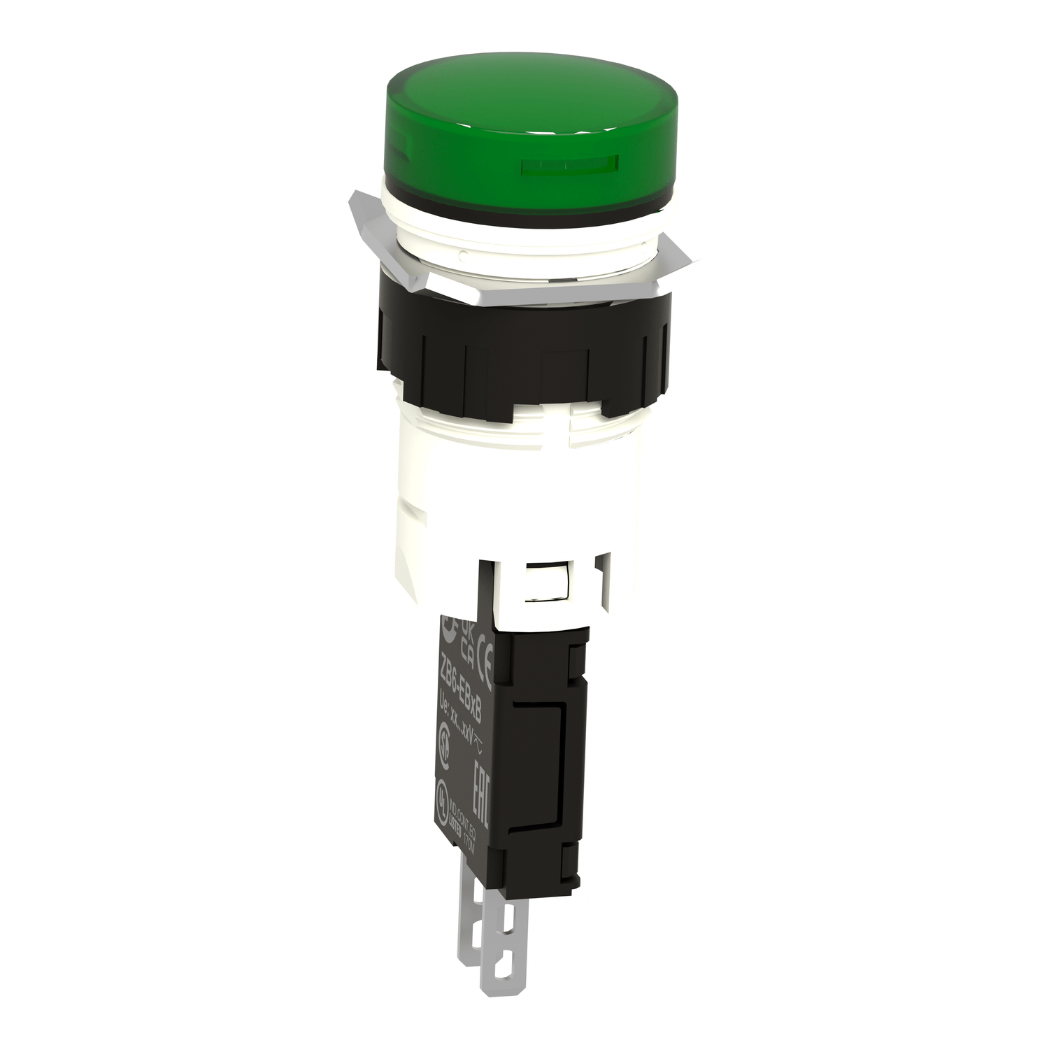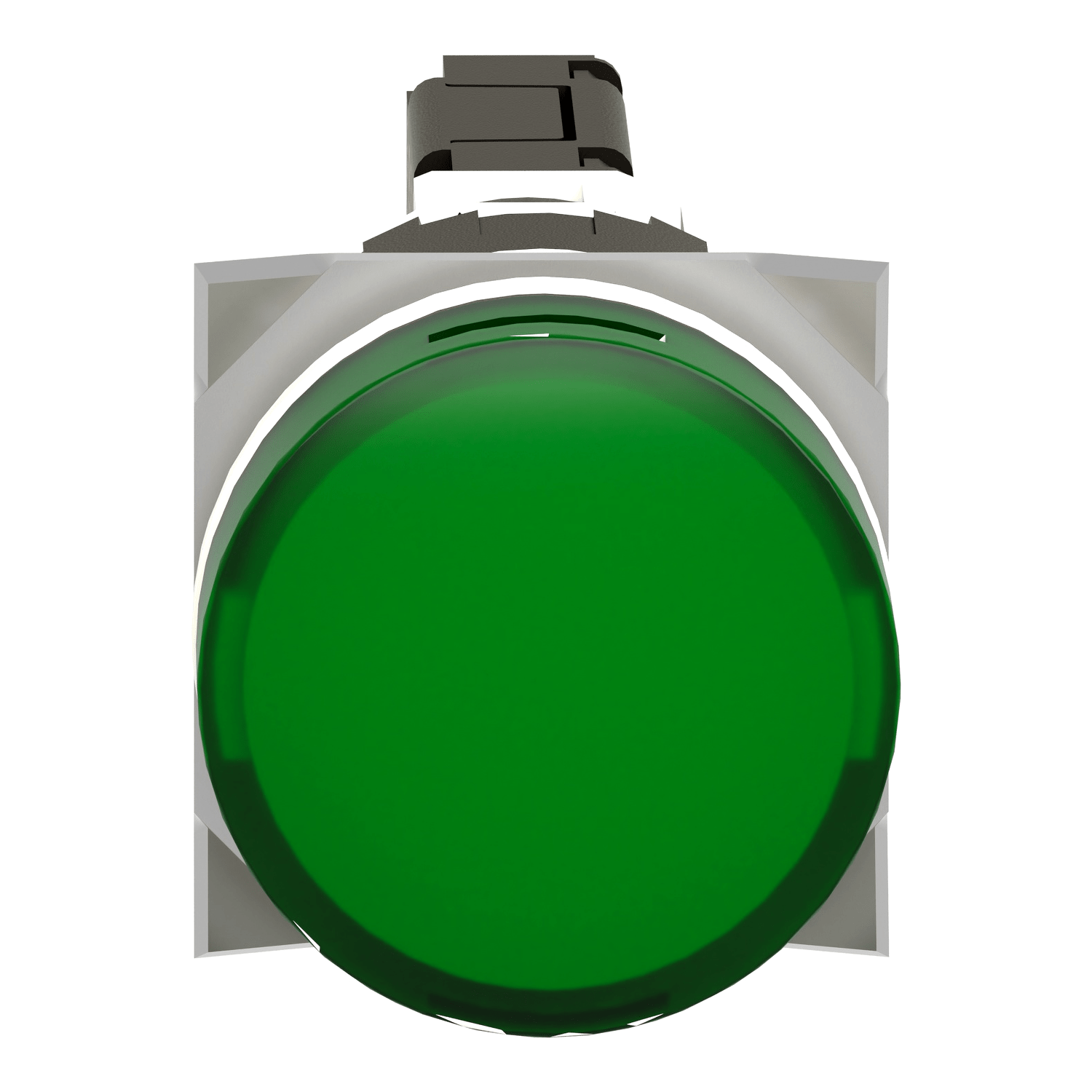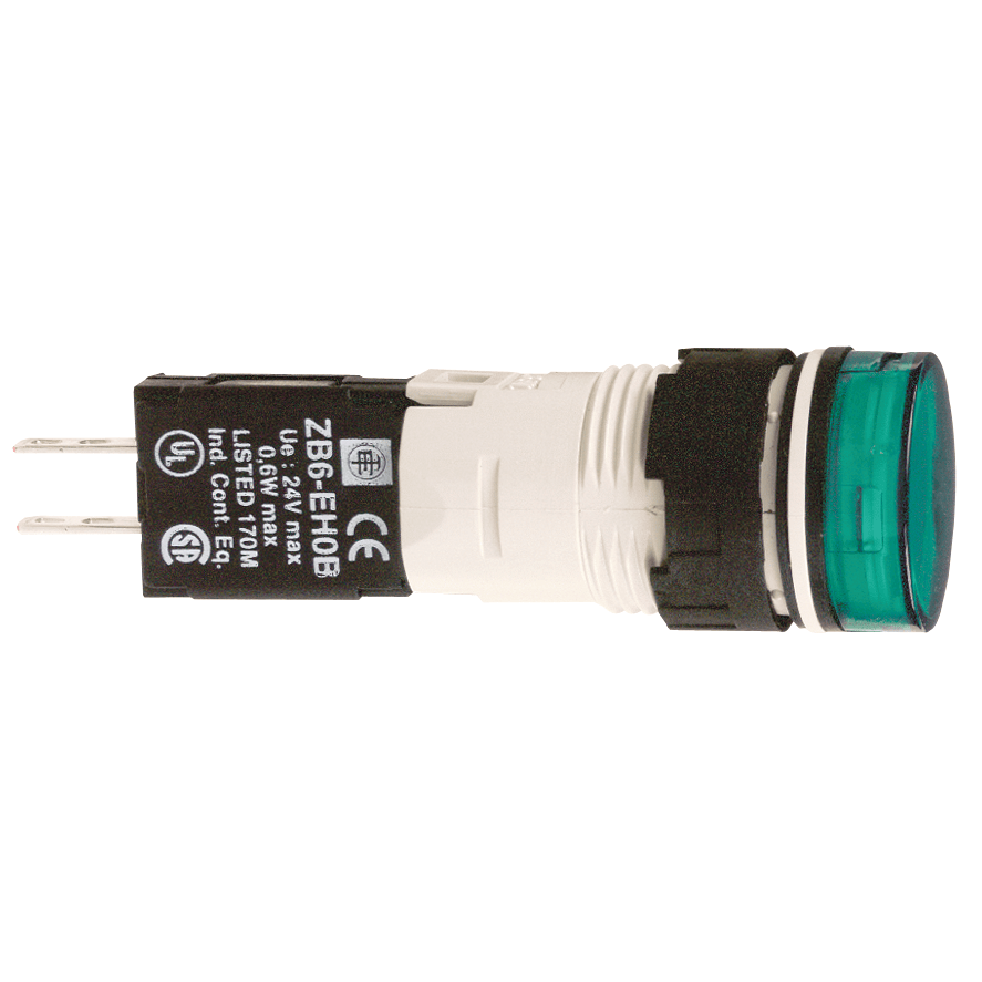 O XB6AV3BB é um sinalizador plástico verde redondo da linha Harmony XB6, sua tensão de funcionamento é de 12...24VCA/CC.É projetado para indicar de forma clara o status do processo e das operações da máquina, pode ser facilmente instalado em painéis com furação padrão de 16mm de diâmetro.Mesmo à distância é visualmente distinguível graças a sua iluminação brilhante.É resistente a impactos, poeira, água e vibração, tornando-a ideal todas as aplicações, em especial as que exigem resistência a agentes químicos e isolamento elétrico duplo.Graças à sua simplicidade de instalação, flexibilidade e robustez, atende aos requisitos da maioria das aplicações industriais, dentre elas podemos citar:,Indústria de alimentos e bebidas, Indústrias químicas, Painéis de distribuição de energia.
