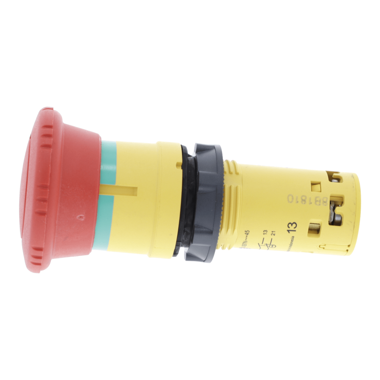O XB7NS8445 é um botão plástico de emergência monobloco, com cabeçote cogumelo de Ø40mm, vermelho da linha Harmony XB7, opera com mecanismo de girar para destravar e possui um contato Normalmente Aberto e um Normalmente Fechado.Ele oferece uma interface ergonômica para controlar suas máquinas e pode ser facilmente instalado em painéis com furação padrão de 22mm de diâmetro.É resistente a impactos, poeira, água e vibração graças ao seu IP65, tornando-o ideal para todas as aplicações, em especial as que exigem resistência a agentes químicos e isolamento elétrico duplo.Graças à sua simplicidade de instalação, flexibilidade e robustez, atende aos requisitos da maioria das aplicações industriais, dentre elas podemos citar:,Indústria de alimentos e bebidas, Indústrias químicas, Painéis de distribuição de energia.