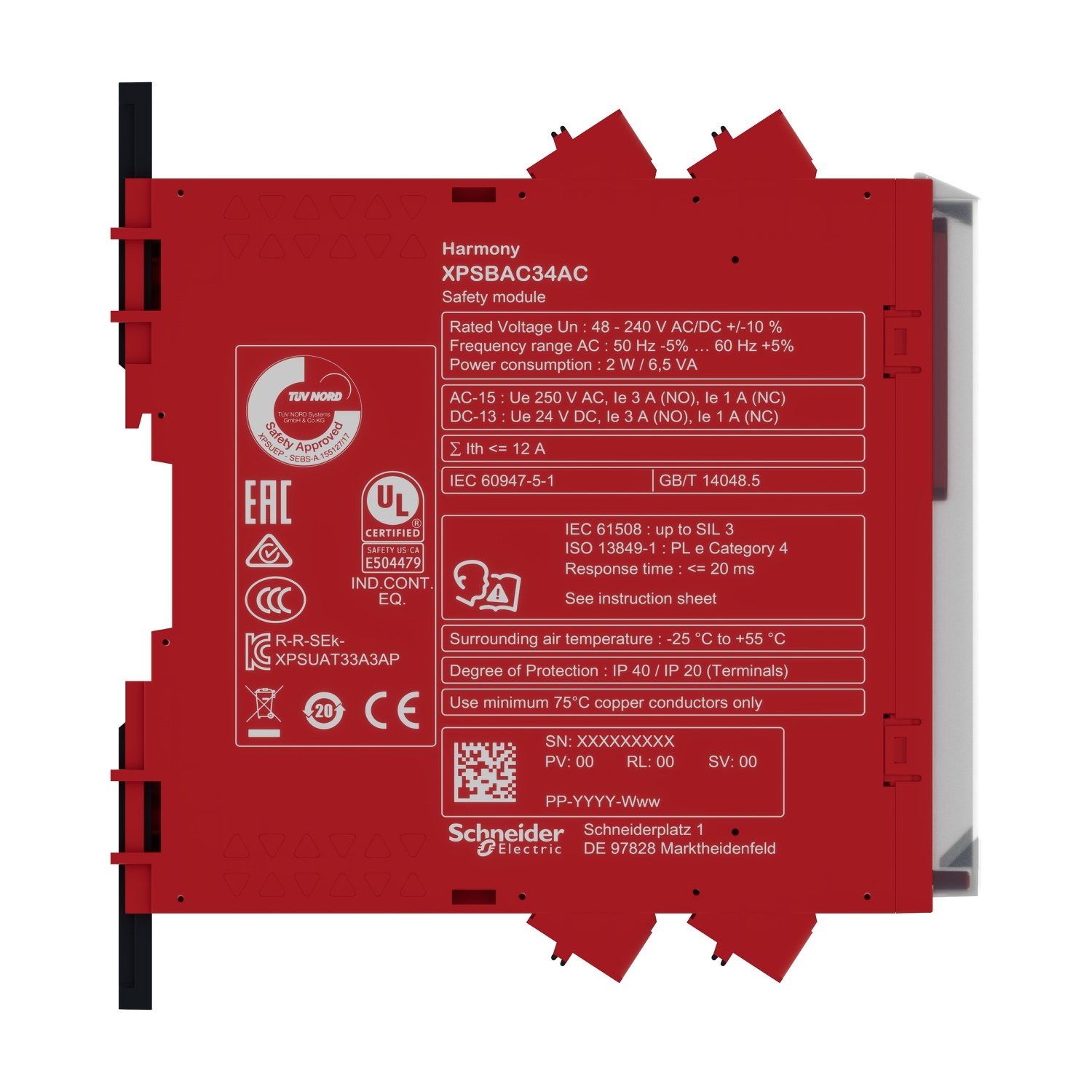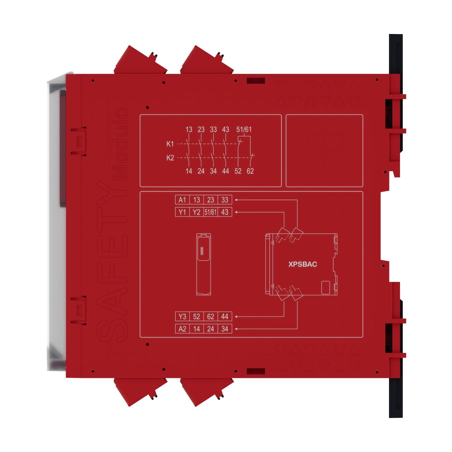 O relé de segurança XPSBAC34AC foi projetado para monitorar parada de emergência. monitor de porta. e switch de segurança para acionamento por corda.. Contém tensão de alimentação de 48-240 Vac/dc. 2 entradas de segurança. 4 saídas Normalmente Abertas e 2 Normalmente Fechadas.. Além de possuir conector por mola e categoria de segurança 4.. Sua composição flexível o torna um produto versátil que atende diversas aplicações com qualidade e eficiência.