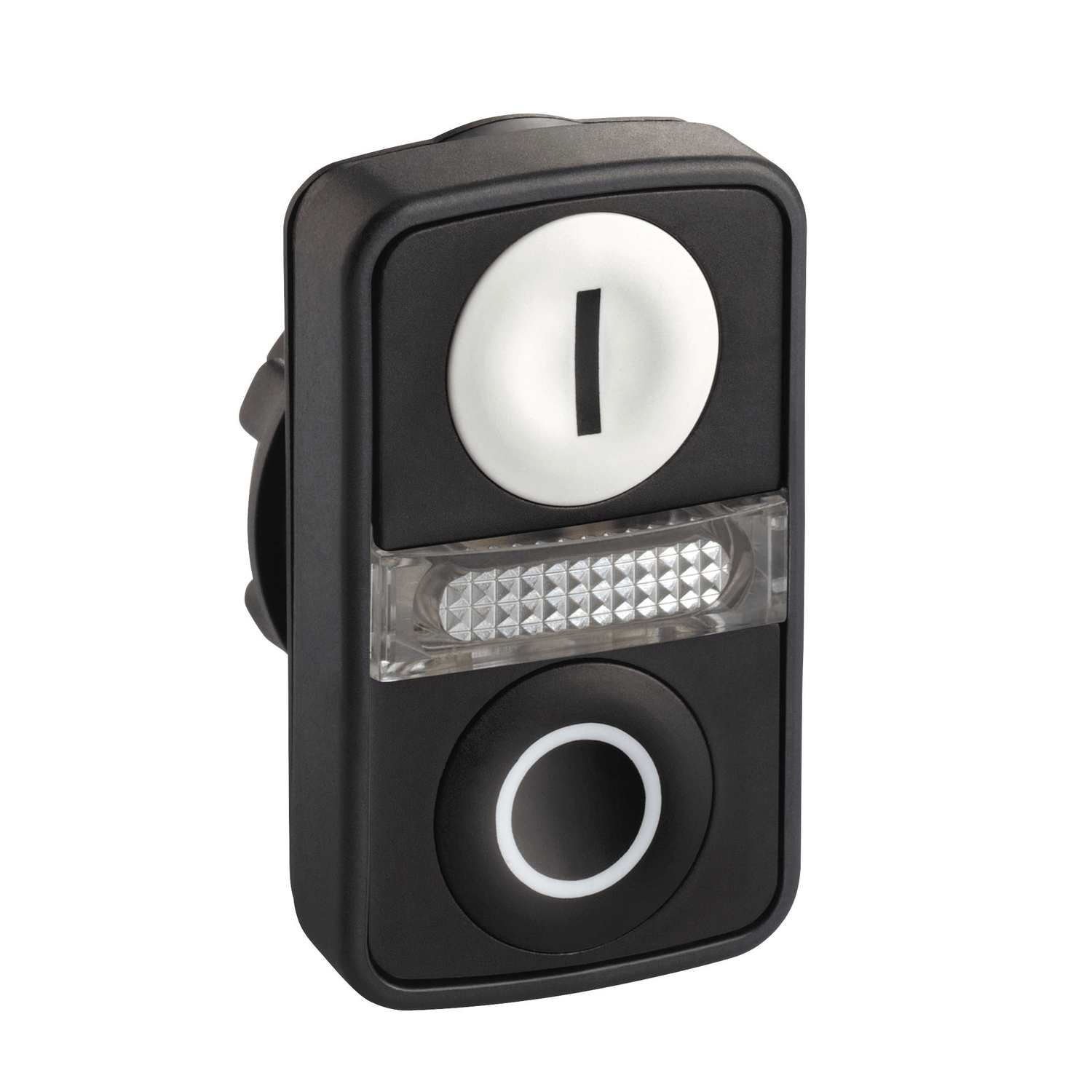 O ZB5AW7A1721 é um cabeçote para botão duplo luminoso Ø22mm plástico, retorno por mola, branco \I\, preto \O\, sinalizador central branco da linha Harmony XB5.Possui cabeçote duplo com 1 botão branco e 1 botão preto, funciona com mecanismo de retorno/impulso por mola.Está marcado com símbolos \I\ e \O\.Este cabeçote duplo fornece uma interface versátil para controlar suas máquinas.Ele é facilmente instalado e substituído em unidades completas de botões e blocos de contato compatíveis por meio de montagem de encaixe rápido.É claramente distinguível visualmente à distância graças às cores claras e ao toque devido aos elementos nivelados, minimizando erros no controle da máquina.É resistente a impactos, à poeira, à água e à vibração graças ao seu IP66.Possui moldura que o torna ideal para aplicações que exigem alta resistência a impactos e vibrações.Ele foi projetado para caber em um recorte padrão de 22 mm, garantindo compatibilidade na instalação em máquinas pré-existentes.Sua ampla faixa de temperaturas de operação permite versatilidade no uso do produto.