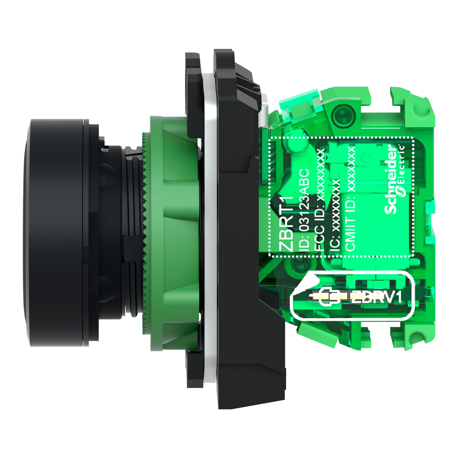O ZB5RTA2 é um botão preto de plástico faceado, sem fio e sem bateria (diâmetro 22 mm) da linha Harmoby XB4/XB5.Está equipado com uma tampa preta.A referência ZB5RTA2 inclui um transmissor equipado com um colar de fixação e um cabeçote de botão de retorno por mola com tampa anexada.A tampa vem montada de fábrica e não pode ser removida.O transmissor e o receptor se comunicam via transmissão de rádio de 2,4 GHz (banda mundial gratuita) Zigbee Green Power.A distância máxima de detecção entre o transmissor e o receptor em campo livre é de até 100m.É resistente a impactos, poeira, água e vibração graças à sua classificação IK03, IP66, IP67, IP69 e IP69K.Esta cabeça de botão é ideal para situações onde são necessárias ações rápidas para que um processo ou máquina funcione corretamente.As interfaces sem fio e sem bateria são usadas para construção de serviços públicos (portas automáticas, iluminação, etc.) e aplicações industriais (sistemas de transporte, automotivo, MMM, logística, alimentos e bebidas).Está em conformidade com diversos acordos de rádio como ANATEL, ARIB T66, FCC, ICASA e RSS, bem como com os padrões CSA C22.2 N° 14, EN/IEC 60947-1, EN/IEC 60947-5-1, e UL 508.A linha Harmony XB5R de interfaces sem fio e sem bateria é adequada para vários serviços públicos de construção e aplicações industriais.