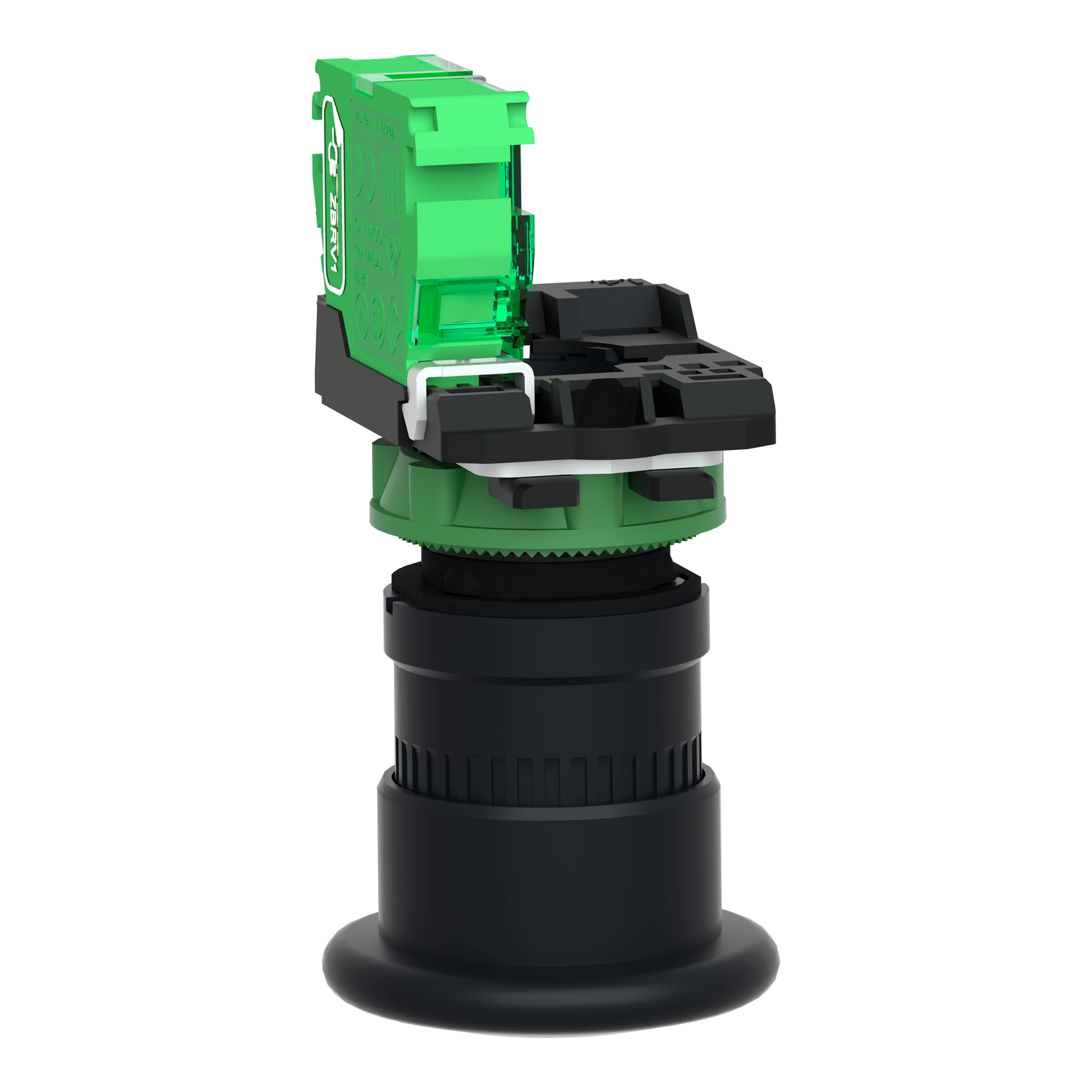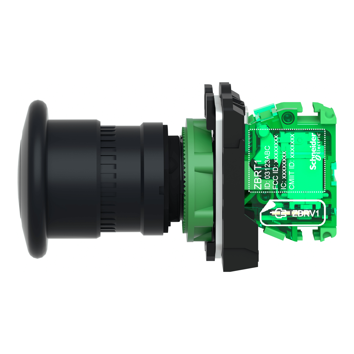 O ZB5RTA6 é um botão cogumelo preto de plástico faceado, sem fio e sem bateria (diâmetro 22 mm) da linha Harmoby XB4/XB5.Está equipado com um cabeçote de diâmetro 40 mm.A referência ZB5RTA6 inclui um transmissor equipado com um colar de fixação e um cabeçote de botão de retorno por mola com tampa anexada.A tampa vem montada de fábrica e não pode ser removida.O transmissor e o receptor se comunicam via transmissão de rádio de 2,4 GHz (banda mundial gratuita) Zigbee Green Power.A distância máxima de detecção entre o transmissor e o receptor em campo livre é de até 100m.É resistente a impactos, poeira, água e vibração graças à sua classificação IK03, IP66, IP67, IP69 e IP69K.Esta cabeça de botão é ideal para situações onde são necessárias ações rápidas para que um processo ou máquina funcione corretamente.As interfaces sem fio e sem bateria são usadas para construção de serviços públicos (portas automáticas, iluminação, etc.) e aplicações industriais (sistemas de transporte, automotivo, MMM, logística, alimentos e bebidas).Está em conformidade com diversos acordos de rádio como ANATEL, ARIB T66, FCC, ICASA e RSS, bem como com os padrões CSA C22.2 N° 14, EN/IEC 60947-1, EN/IEC 60947-5-1, e UL 508.A linha Harmony XB5R de interfaces sem fio e sem bateria é adequada para vários serviços públicos de construção e aplicações industriais.