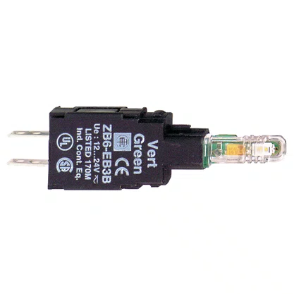 O ZB6EB5B é o corpo para o sinalizador da linha Harmony XB6 que faz parte dos botões, seletores e sinalizadores de plástico de diâmetro 16 mm.Possui LED integral de coloração amarela, alimentação 12...24 VCA/CC e possuindo conexão faston.Ele oferece uma interface ergonômica para controlar suas máquinas e pode ser facilmente instalado em painéis com furação padrão de 16mm de diâmetro.É resistente a impactos, poeira, água e vibração, tornando-o ideal para todas as aplicações, em especial as que exigem resistência a agentes químicos e isolamento elétrico duplo.Graças à sua simplicidade de instalação, flexibilidade e robustez, atende aos requisitos da maioria das aplicações industriais, dentre elas podemos citar:,Indústria de alimentos e bebidas, Indústrias químicas, Painéis de distribuição de energia.